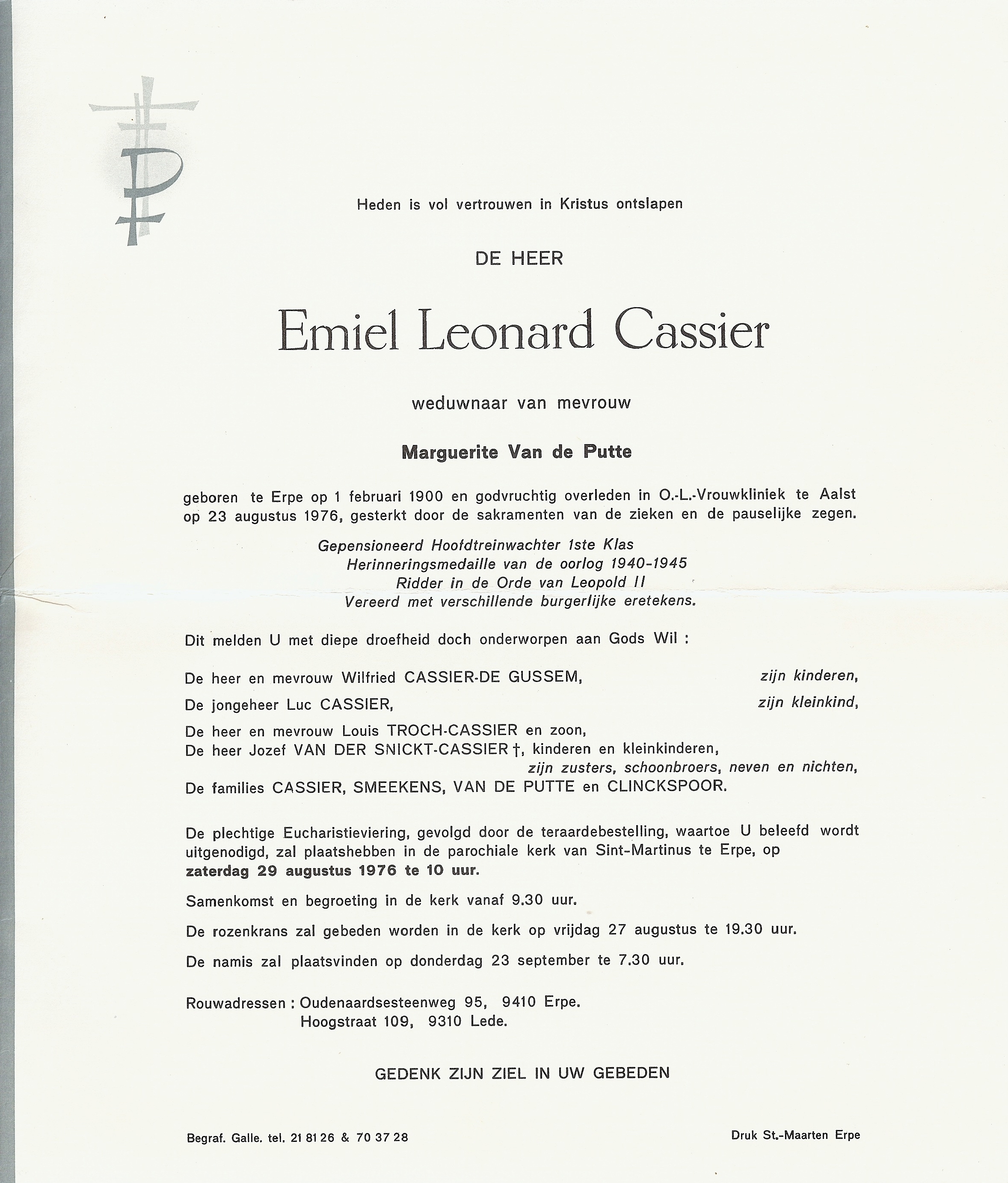 Emiel Leonard CassierLeeftijd: 76 jaar1900–1976