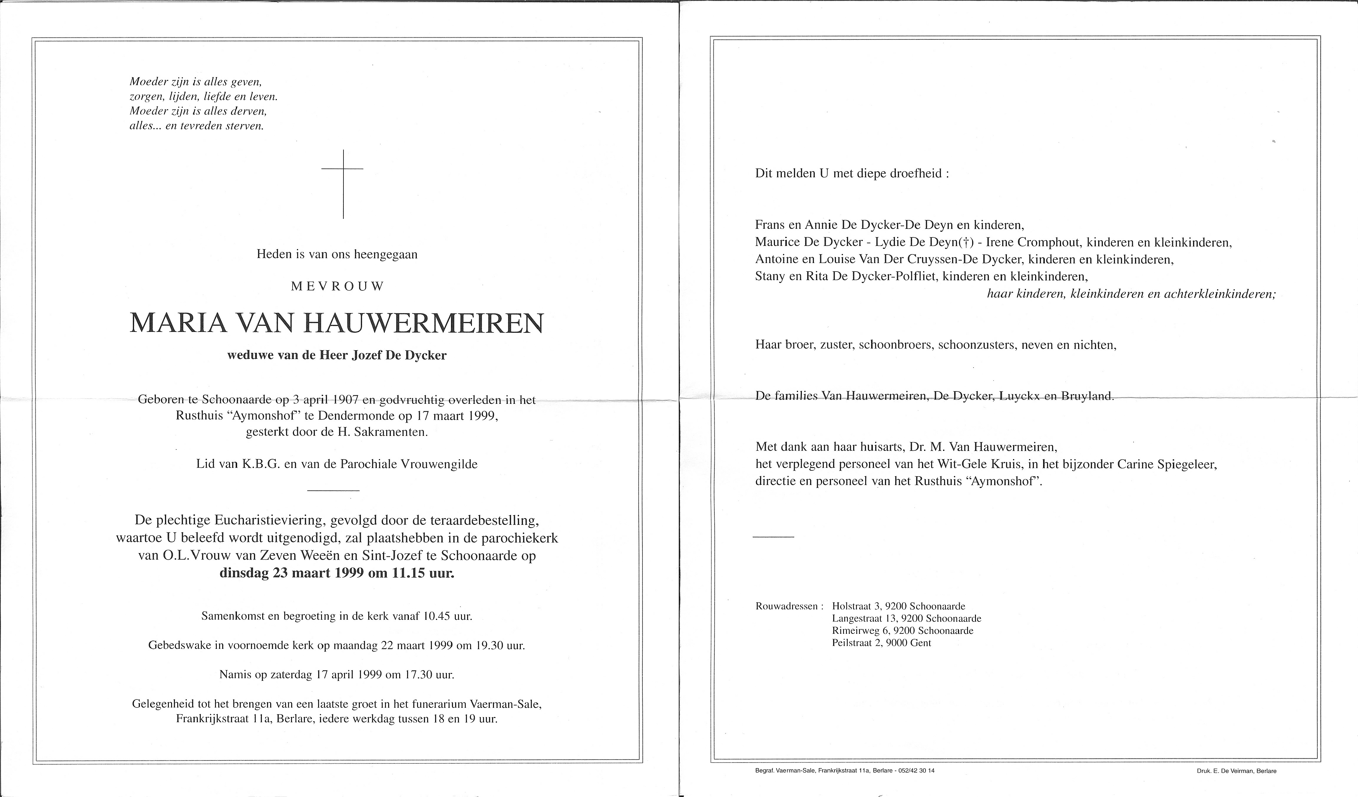 Maria Van HauwermeirenLeeftijd: 91 jaar1907–1999