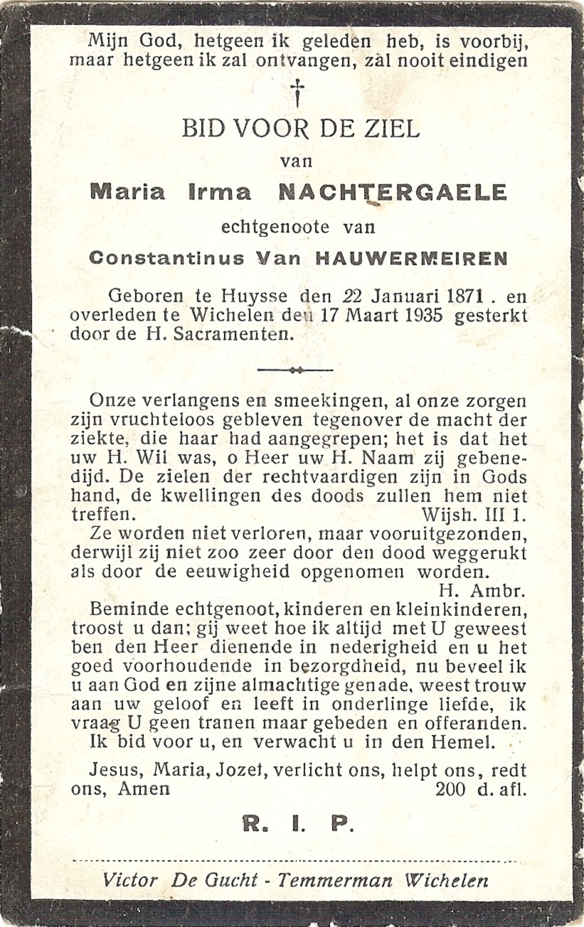 Overlijden van grootmoeder van vaders kant | Maria Irma Nachtergaele 17 maart 1935 (Leeftijd 7 jaar) |