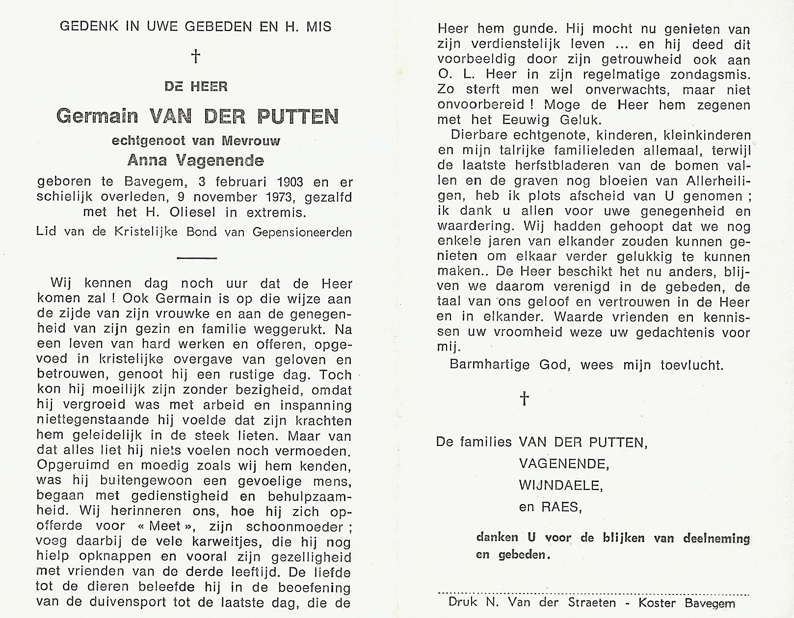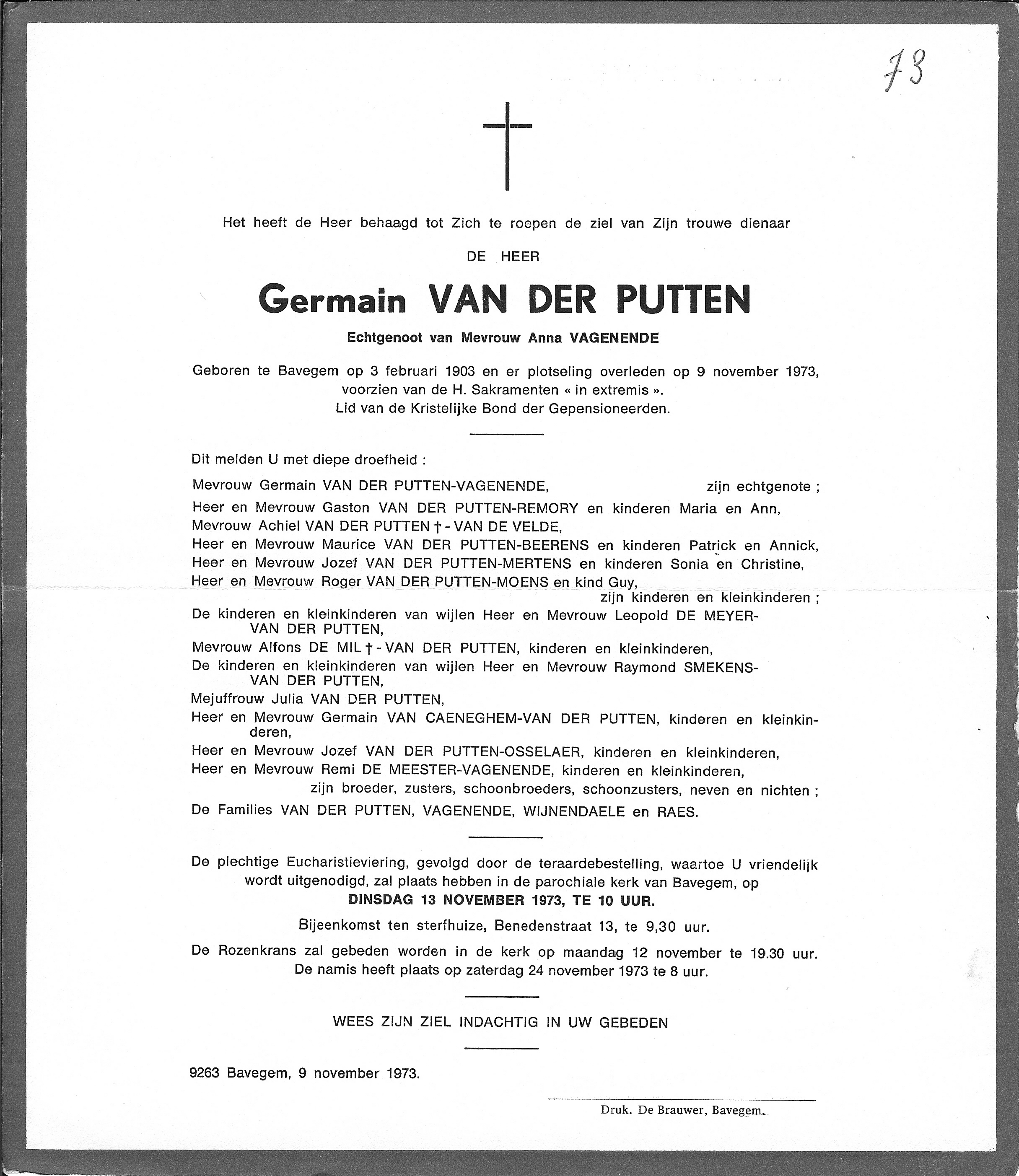 Overlijden van een broer | Germanus Van Der Putten 9 november 1973 (Leeftijd 69 jaar) |