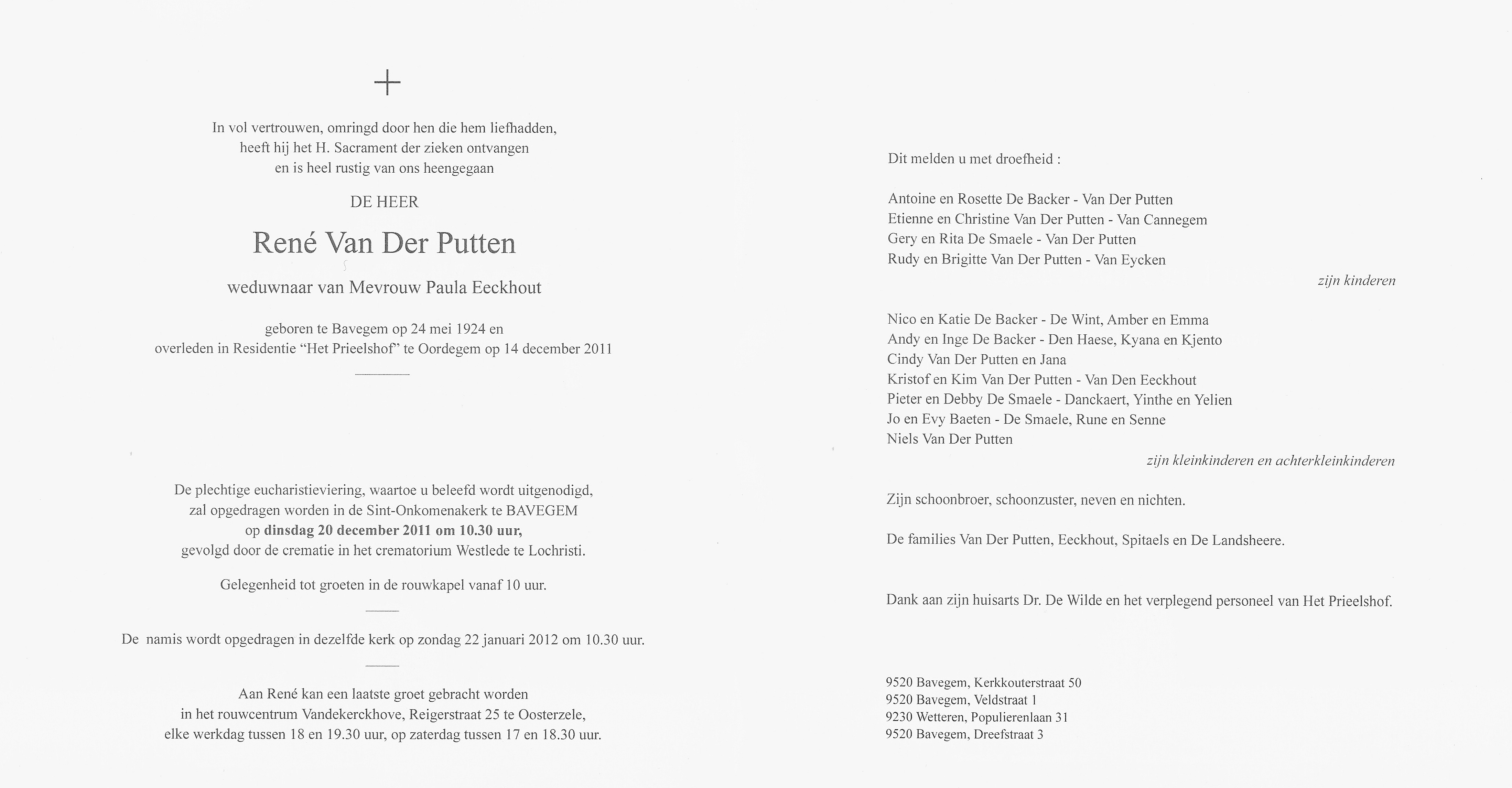 Overlijden van een broer | Germain Van Der Putten 8 november 1997 (Leeftijd 73 jaar) |