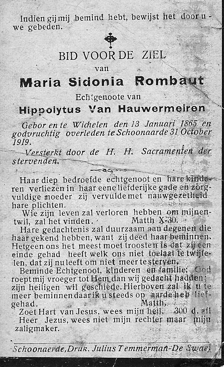 Geboren: 13 januari 1865 42 38 — Wichelen Overleden: 31 oktober 1919 — Schoonaarde |