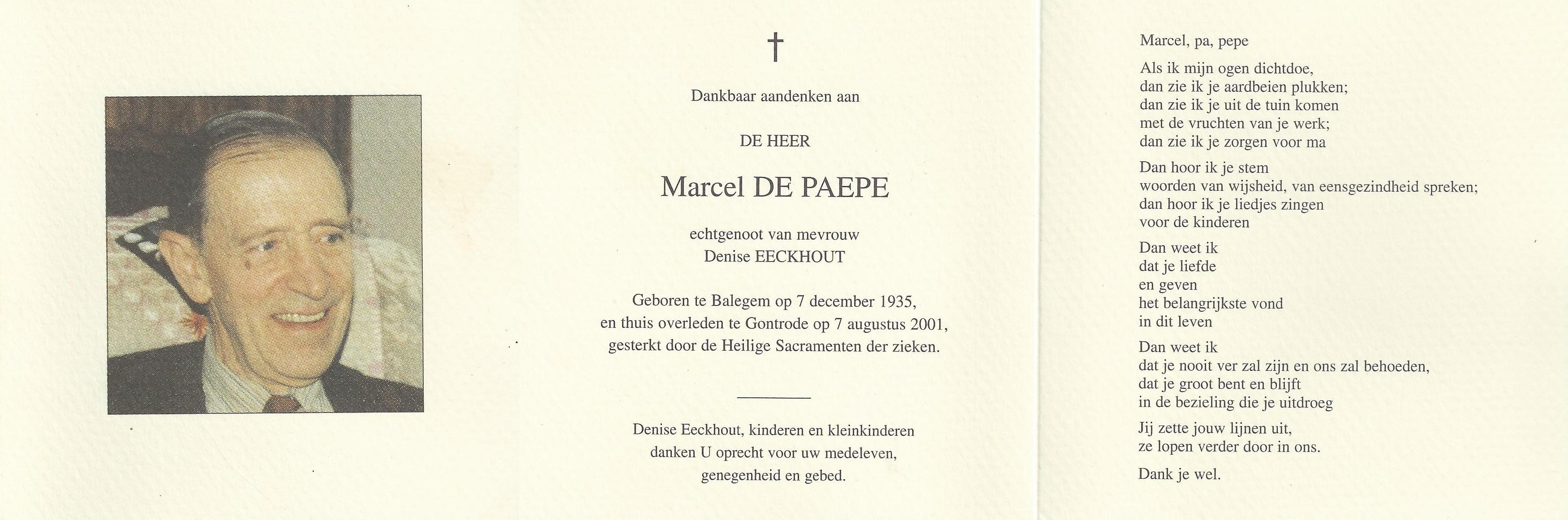 Marcel De Paepe Geboren: 7 december 1935 — Balegem Overleden: 7 augustus 2001 — Gontrode |