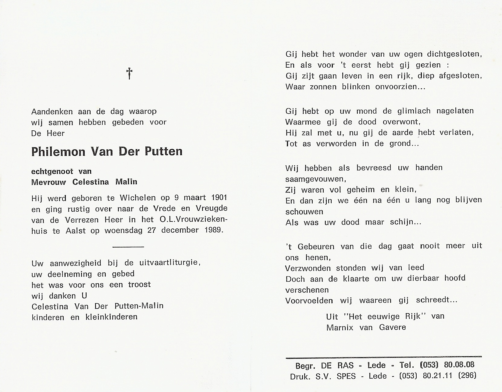 Overlijden van een broer | Philemon Van der Putten 27 december 1989 (Leeftijd 90 jaar) |