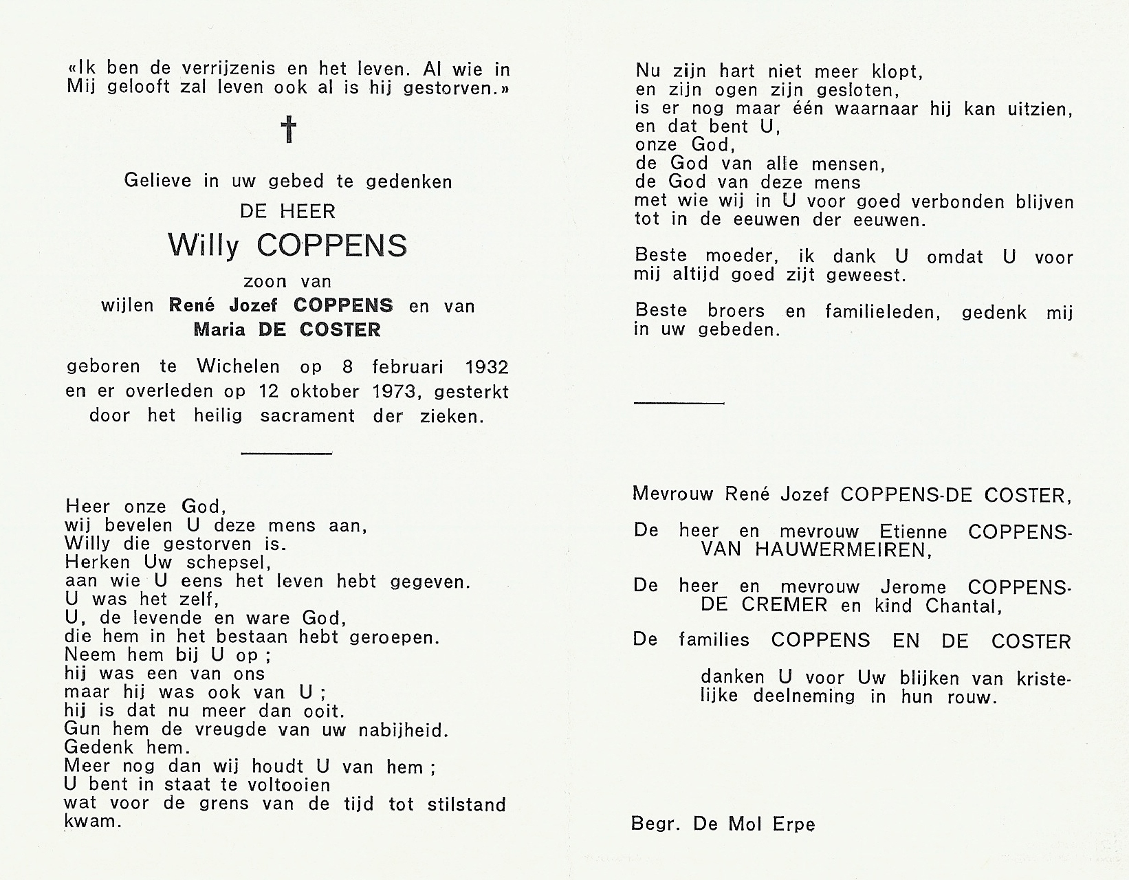Overlijden van een zoon | Willy Coppens 12 oktober 1973 (Leeftijd 67 jaar) |