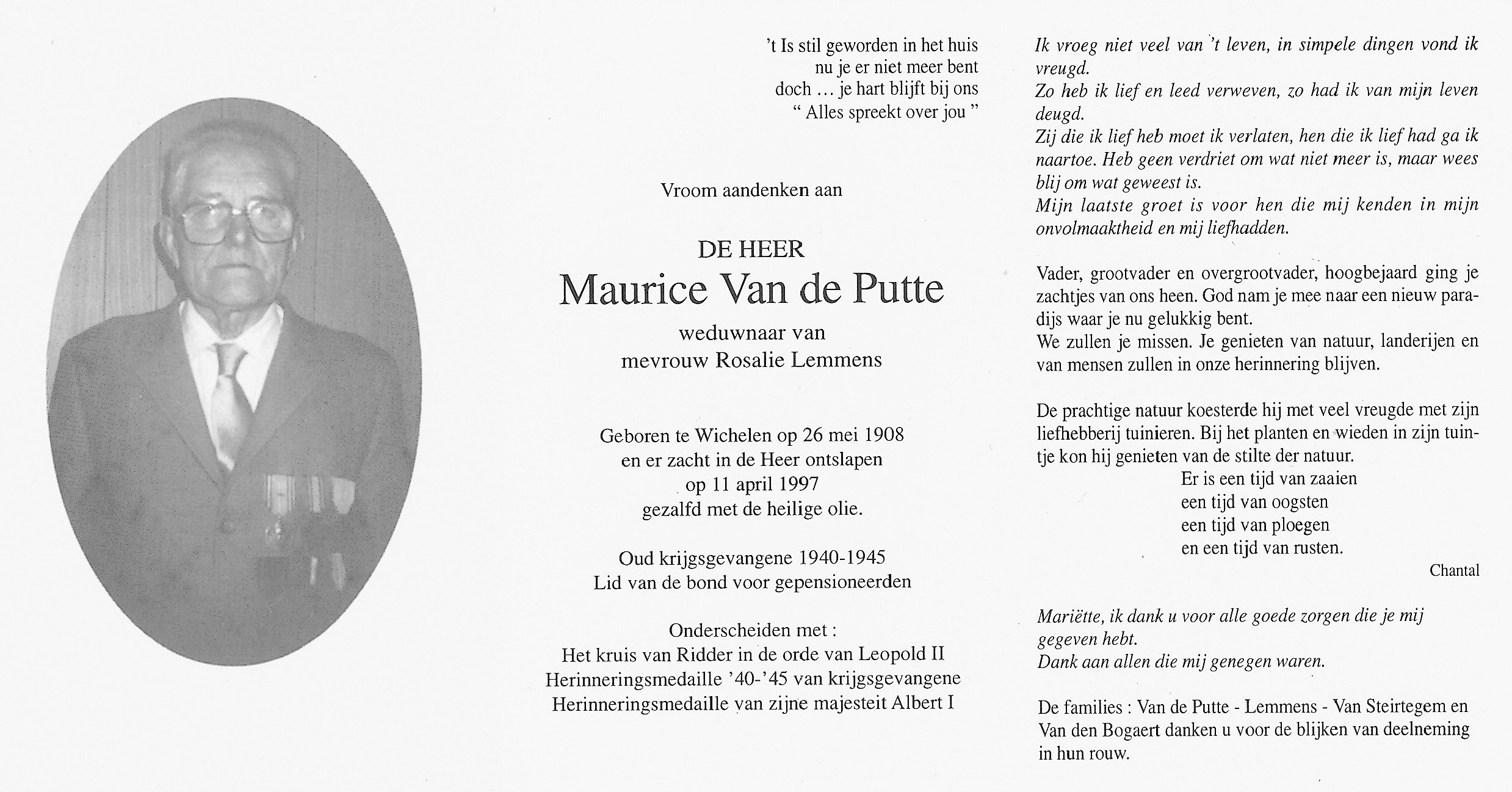 Maurice Van de PutteLeeftijd: 88 jaar1908–1997