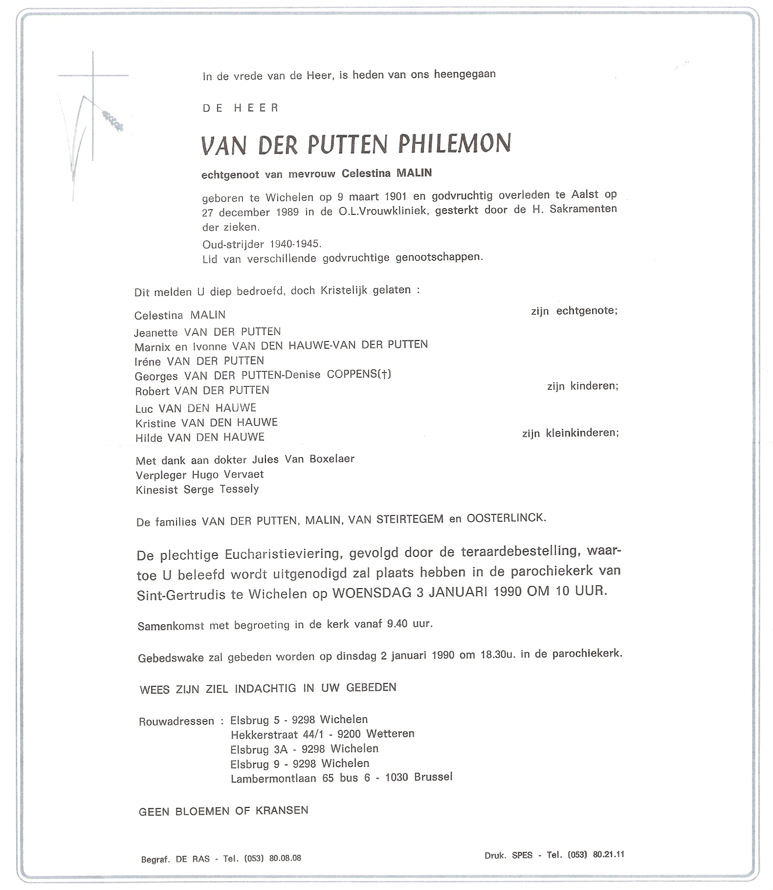 Philemon Van der PuttenLeeftijd: 88 jaar1901–1989