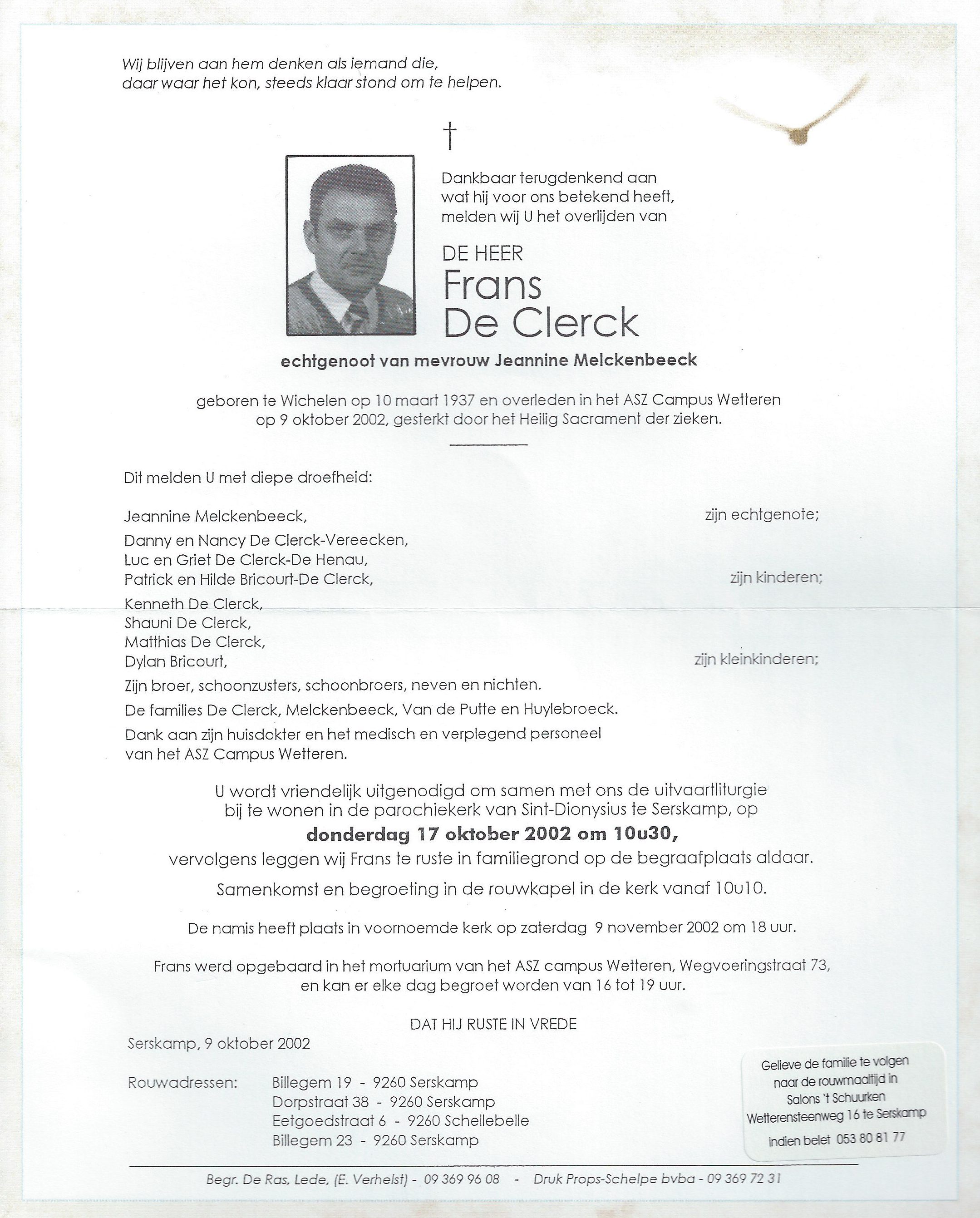 Frans De ClerckLeeftijd: 65 jaar1937–2002