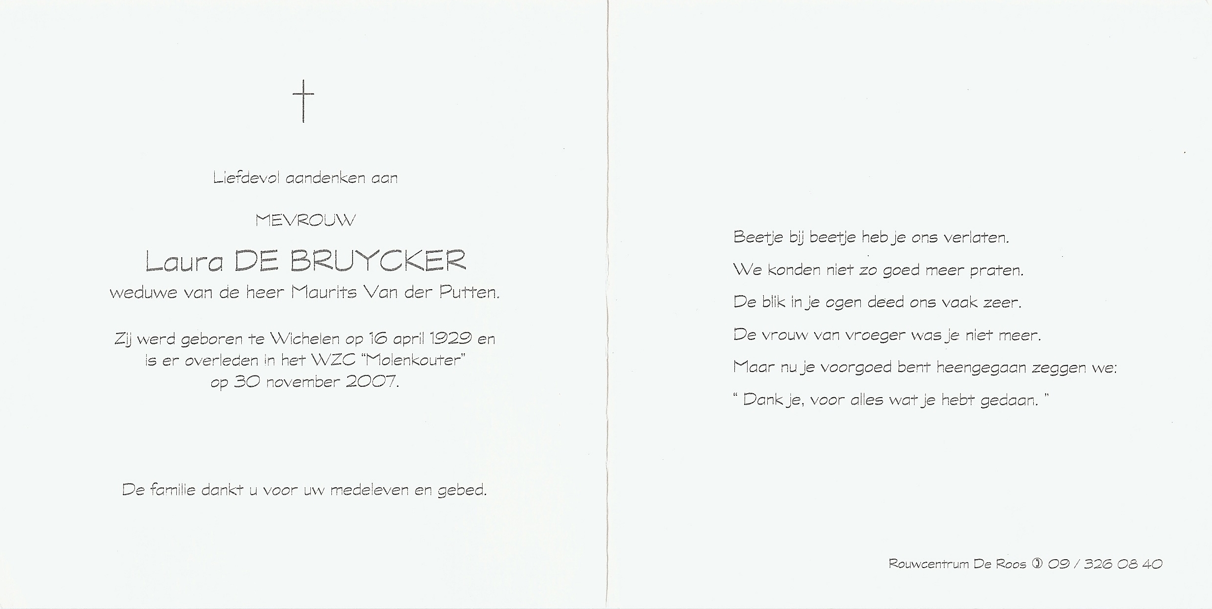 Overlijden van een echtgenoot | Maurits Domien Van der Putten 4 november 1985 (Leeftijd 56 jaar) |