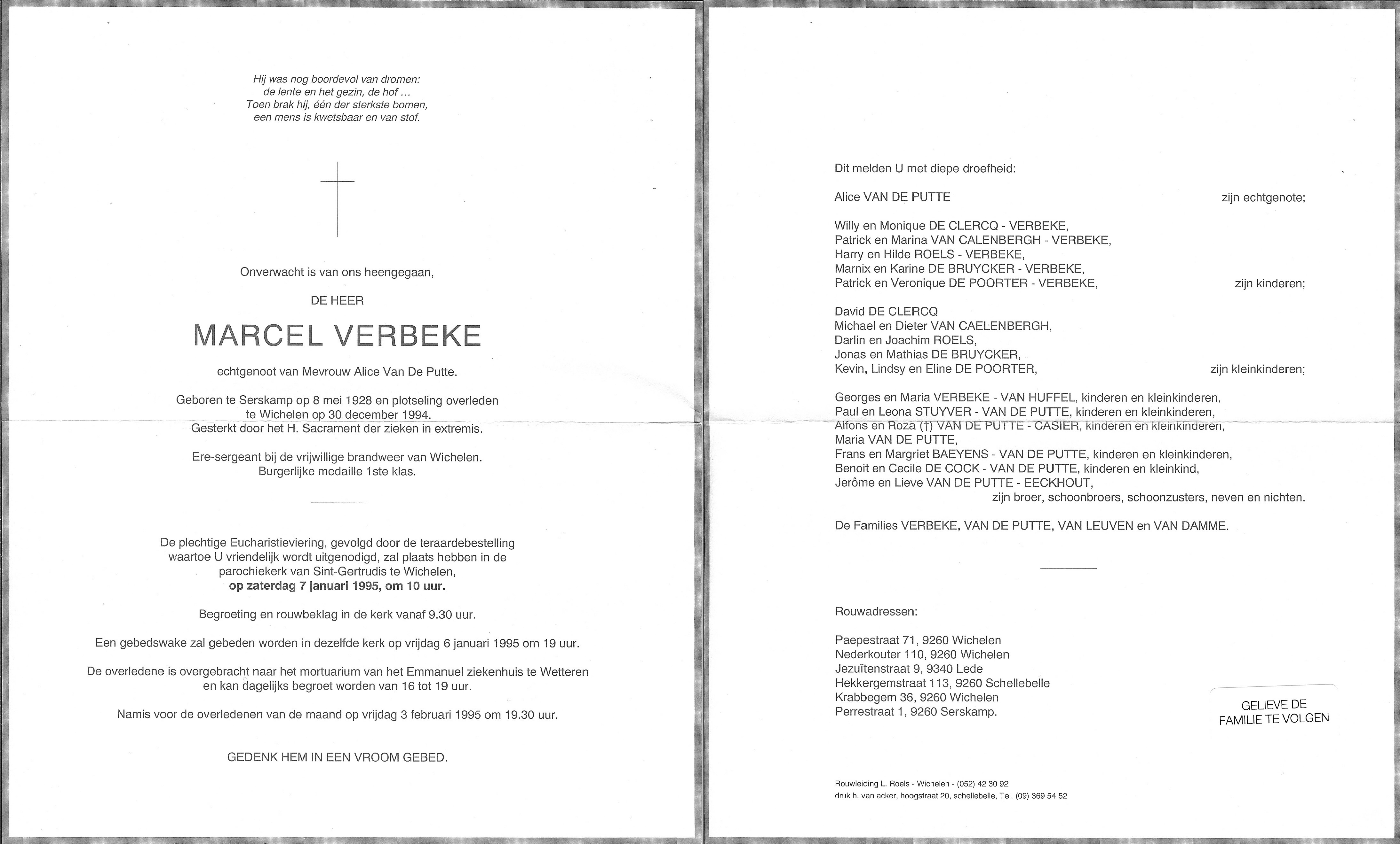 Overlijden van een echtgenoot | Marcel Verbeke 30 december 1994 (Leeftijd 59 jaar) |
