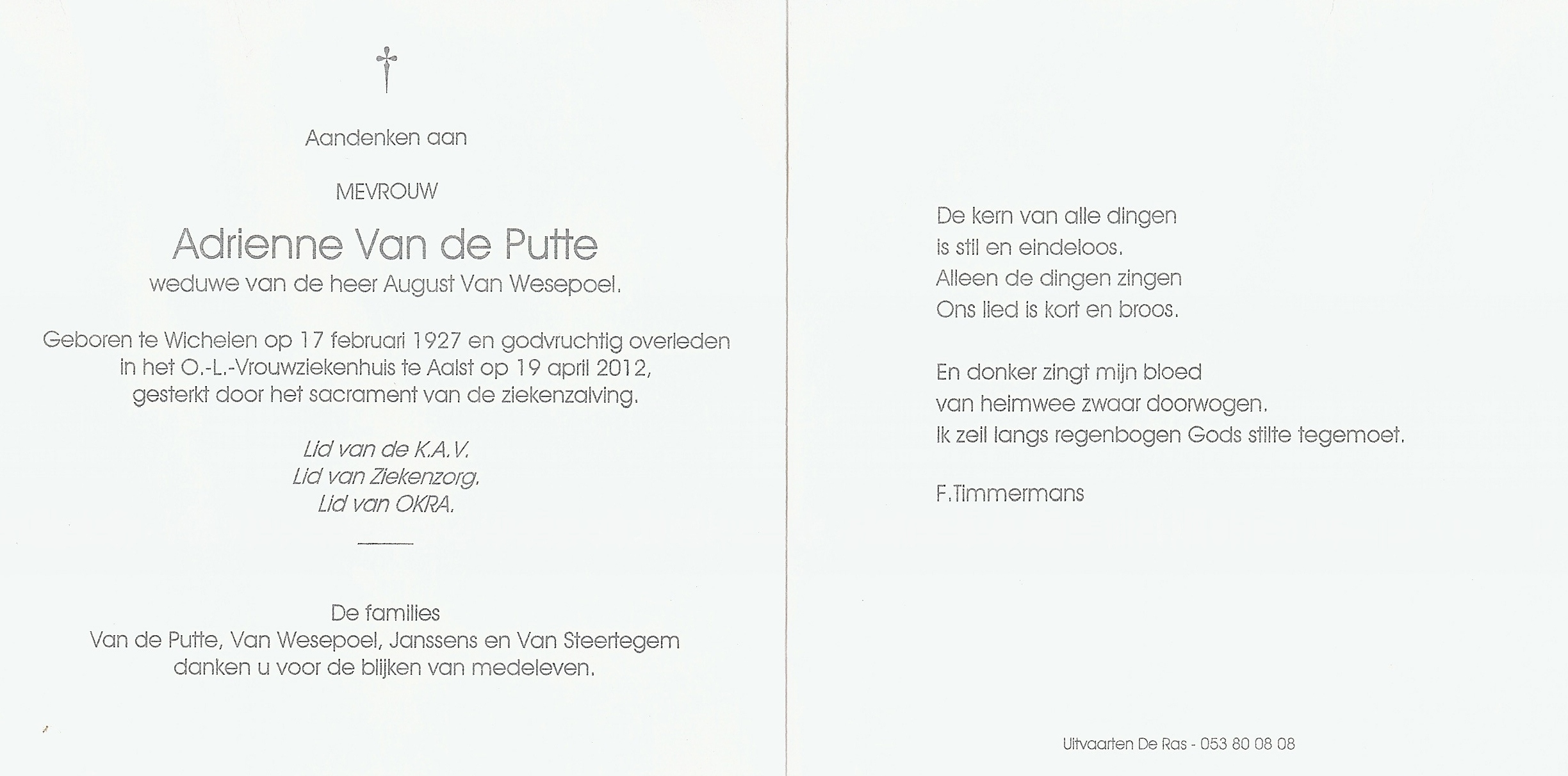 Geboren: 17 februari 1927 29 24 — Wichelen Overleden: 19 april 2012 — Aalst |