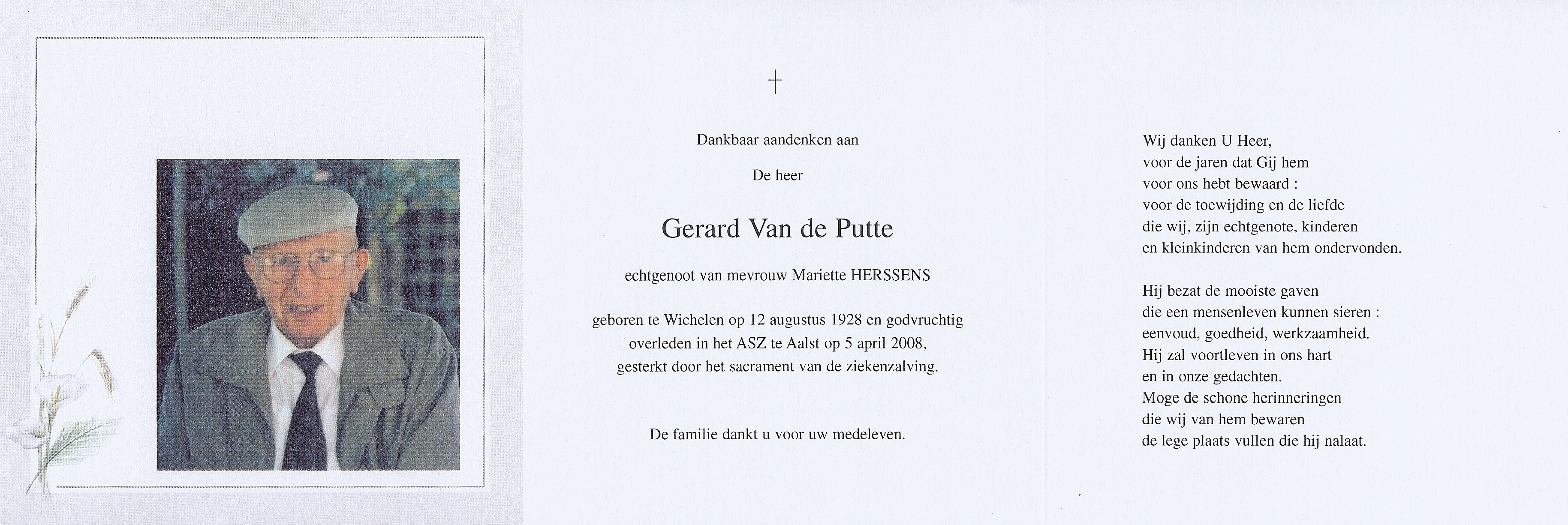 Gerardus Gustaaf Van de PutteLeeftijd: 79 jaar1928–2008