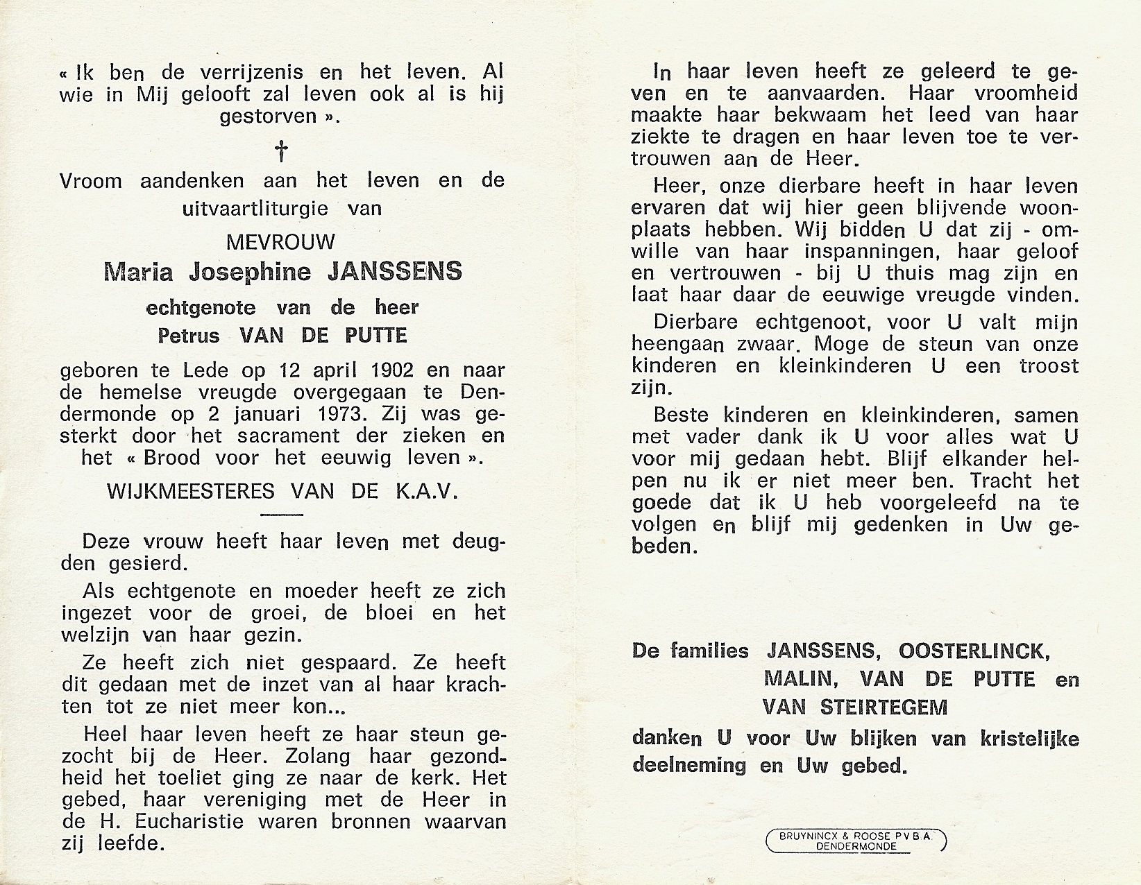 Overlijden van moeder | Maria Josephina Janssens 2 januari 1973 (Leeftijd 44 jaar) |