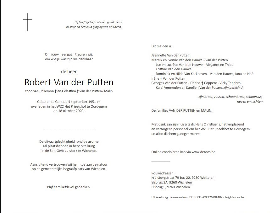 Robert Petrus Van der PuttenLeeftijd: 69 jaar1951–2020