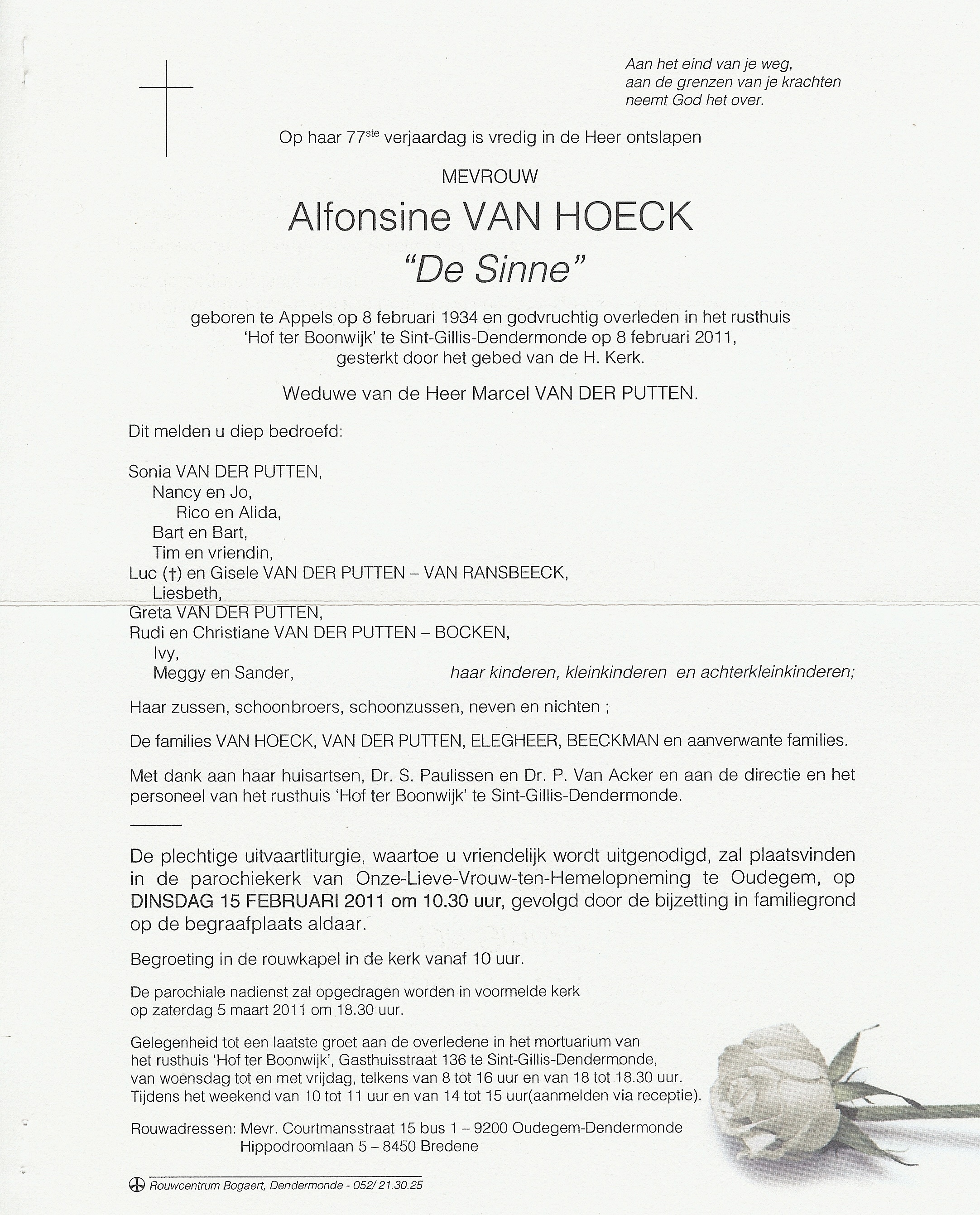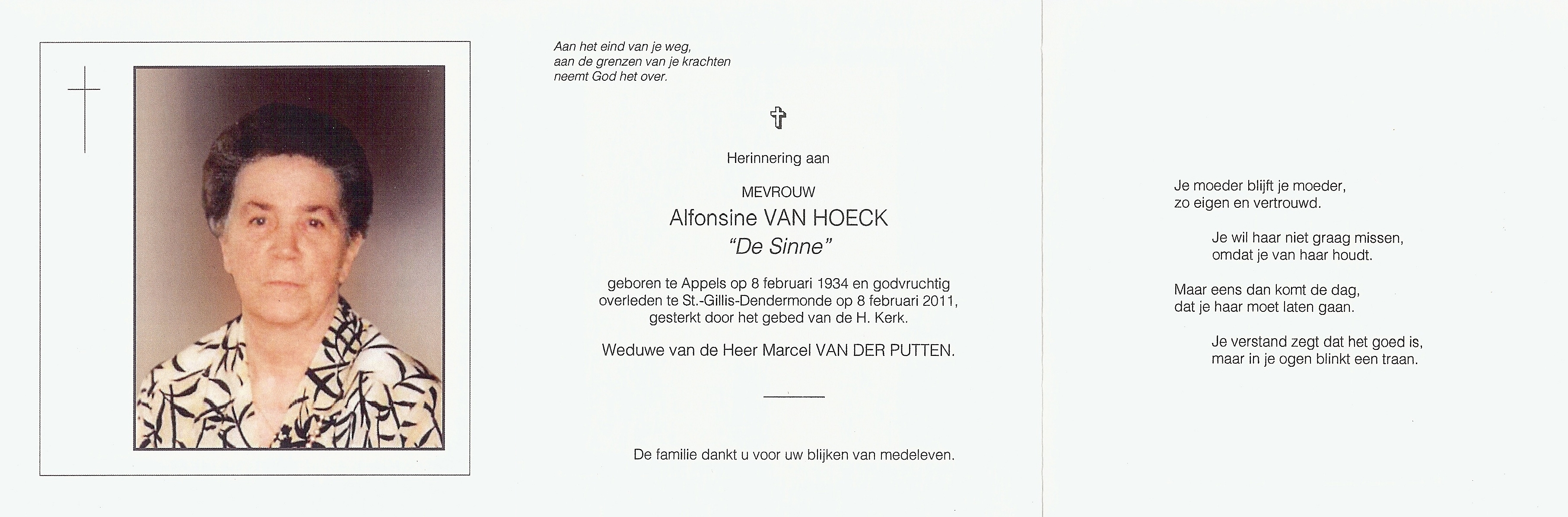 Alfonsine Van HoeckLeeftijd: 77 jaar1934–2011