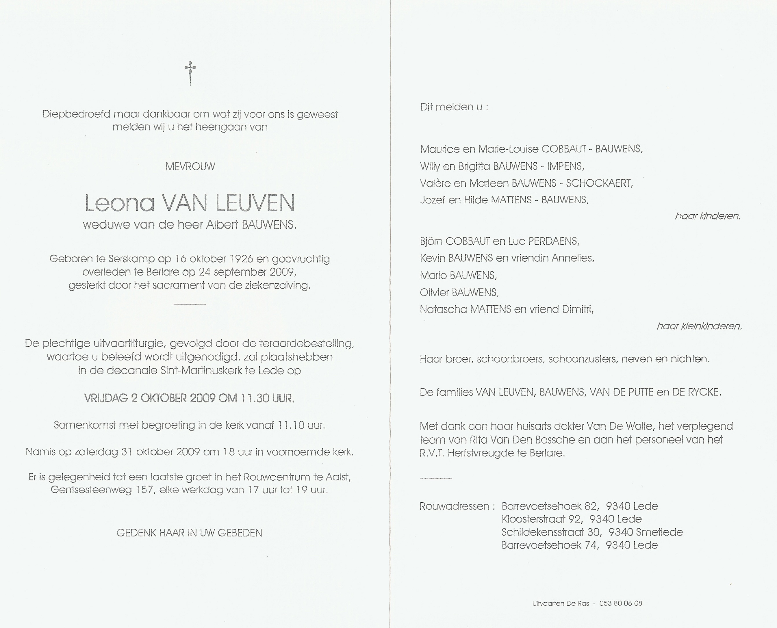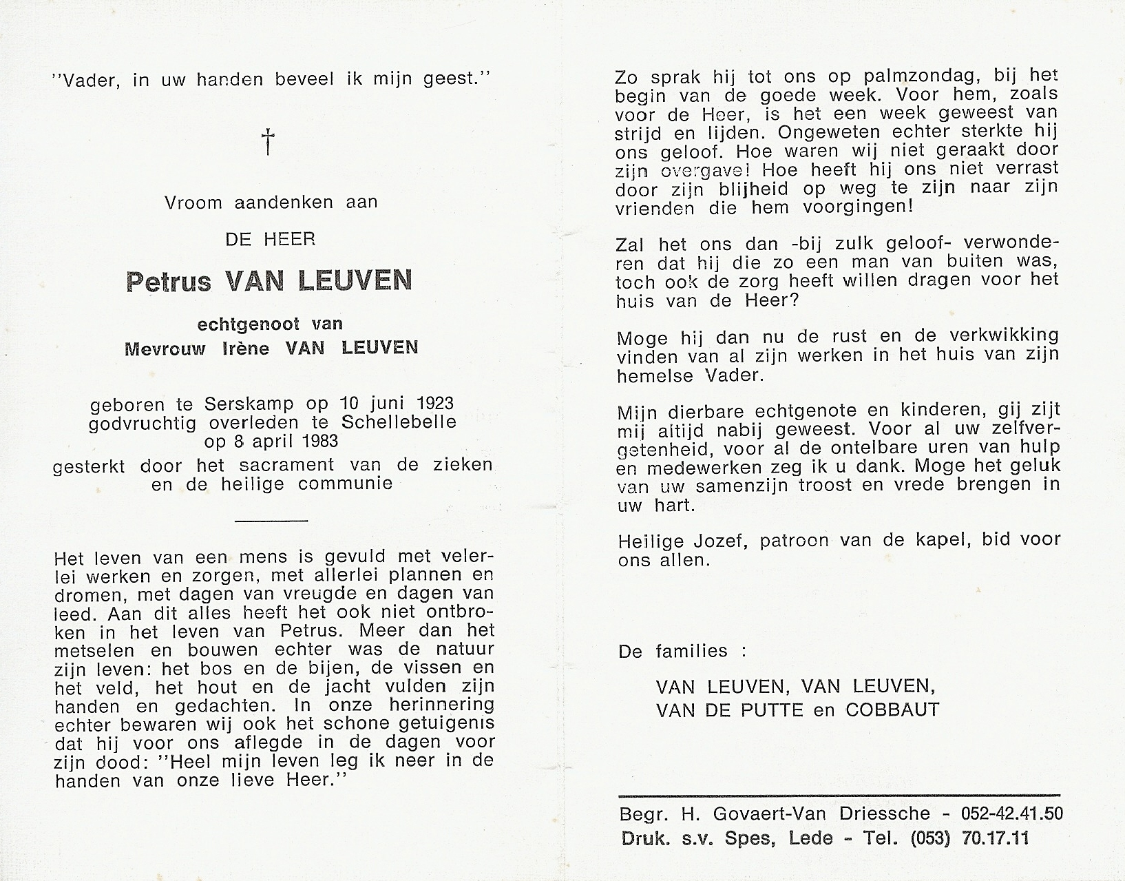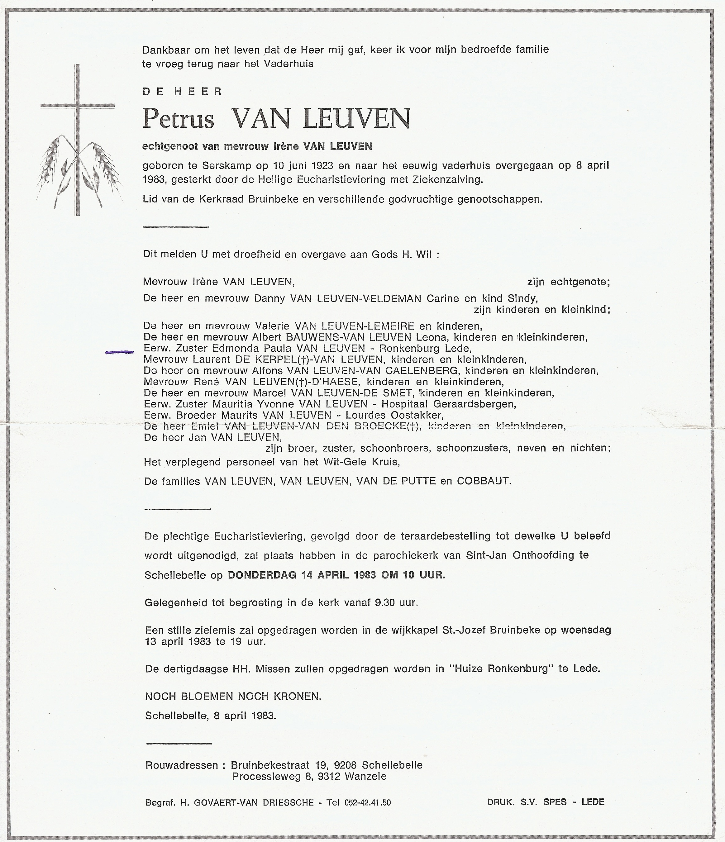 Overlijden van een broer | Petrus Van Leuven 8 april 1983 (Leeftijd 56 jaar) |