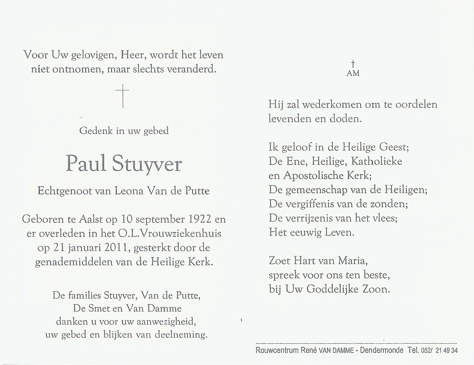 Paul Stuyver Geboren: 10 september 1922 — Aalst Overleden: 21 januari 2011 — Aalst |