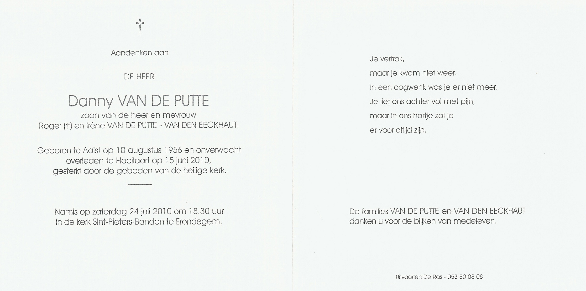Begrafenis van vader | Roger Petrus Van de Putte 7 november 1990 (Leeftijd 34 jaar) |