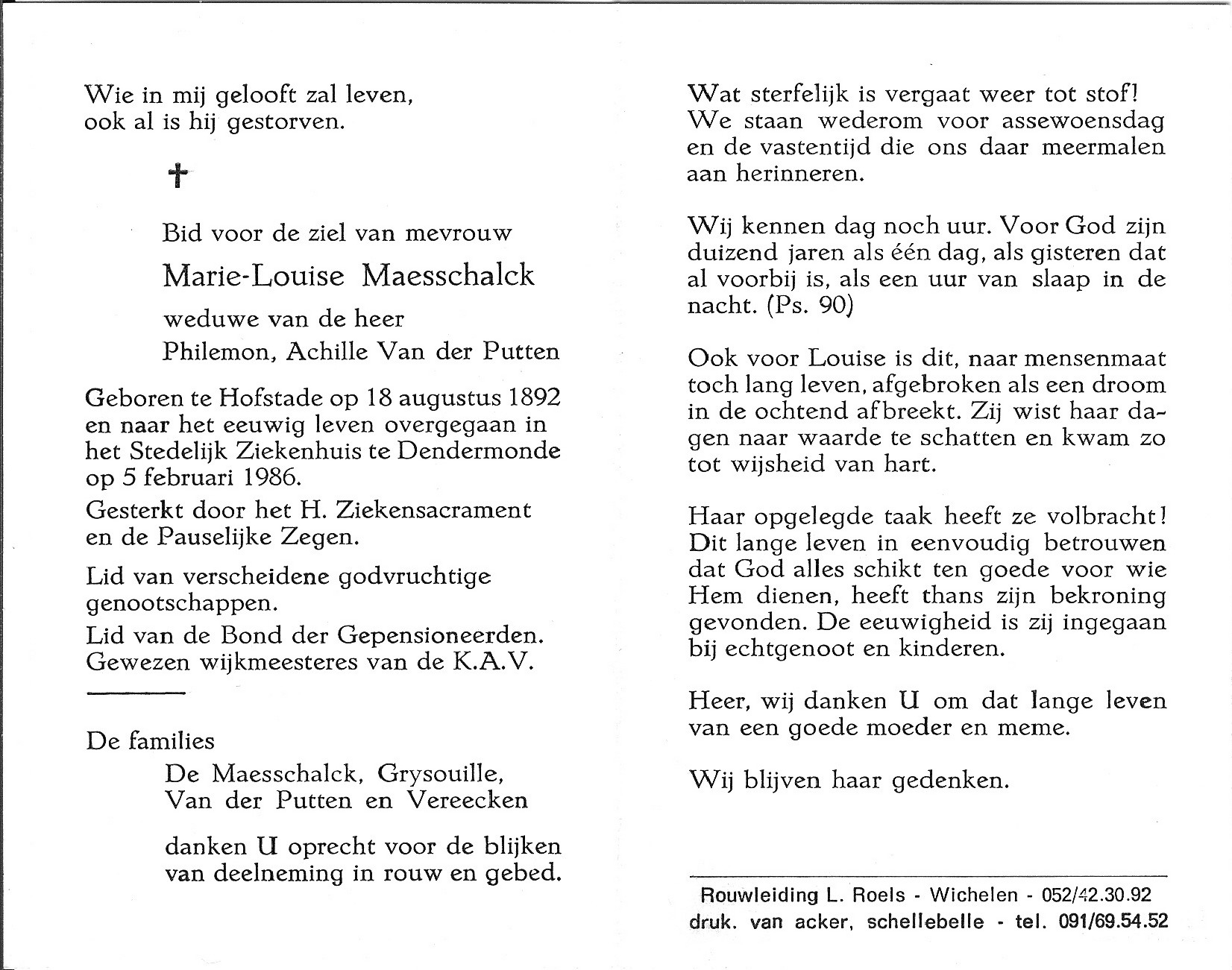 Overlijden van moeder | Marie-Louise Maesschalk 5 februari 1986 (Leeftijd 52 jaar) |