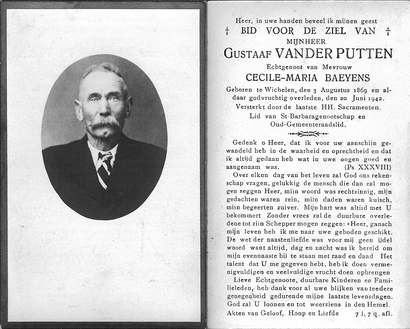 Overlijden van een broer | Gustaaf Van der Putten 20 juni 1942 (Leeftijd 75 jaar) |