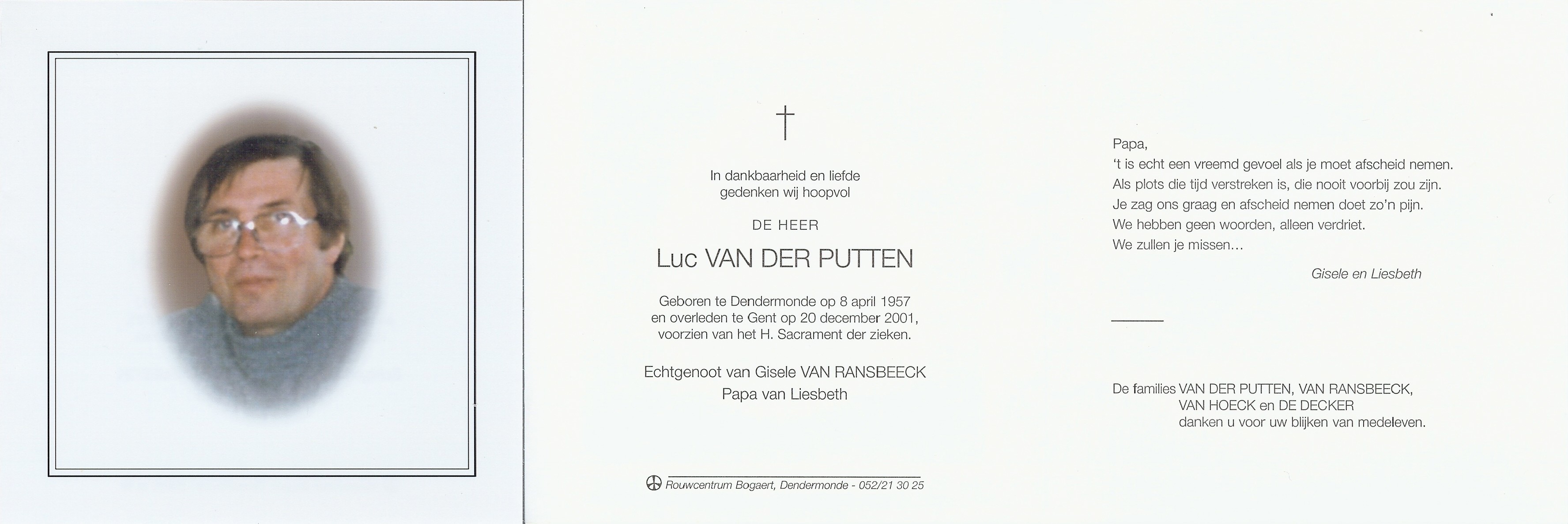 Luc Van der PuttenLeeftijd: 44 jaar1957–2001