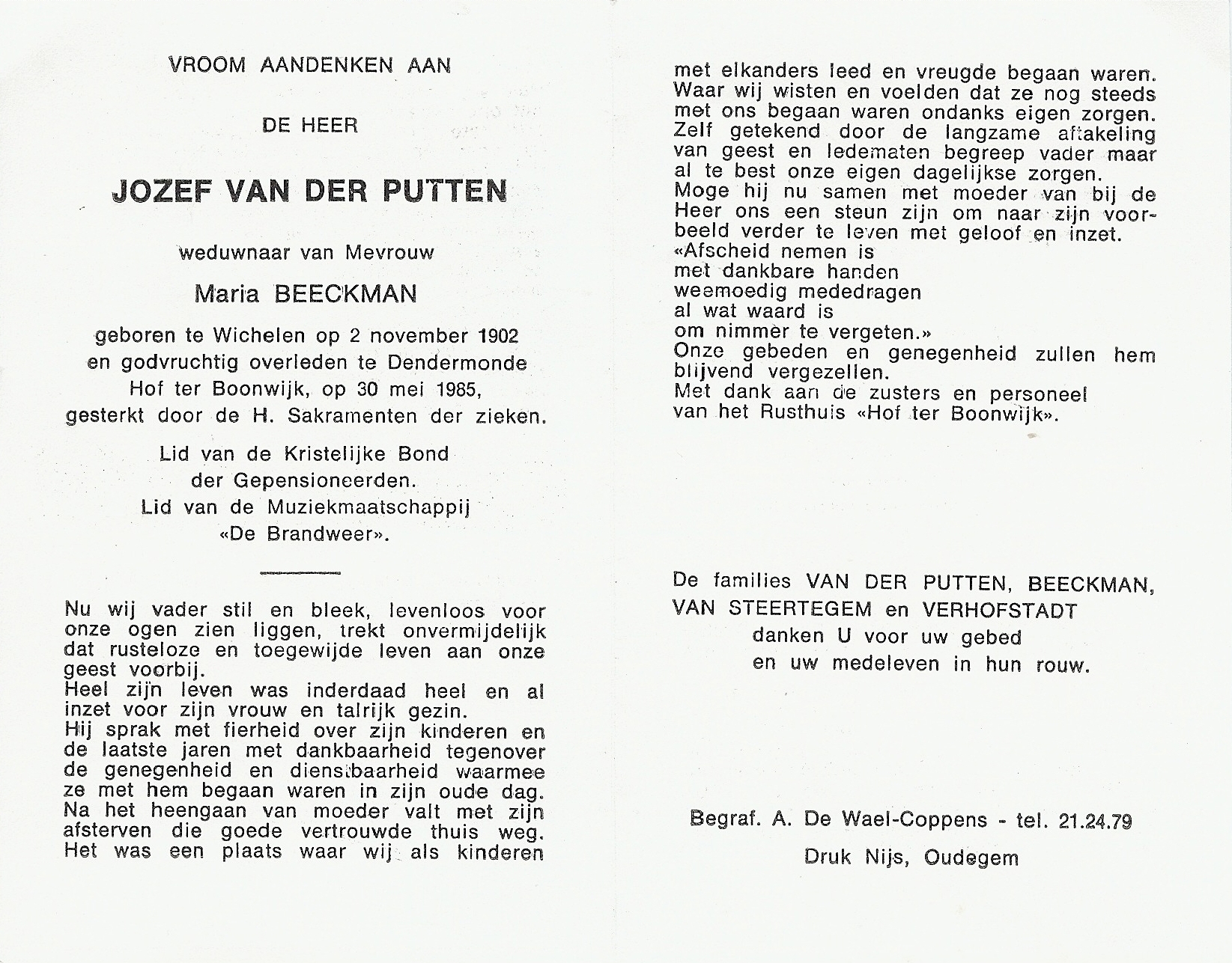 Overlijden van grootvader van vaders kant | Josephus Van der Putten 30 mei 1985 (Leeftijd 28 jaar) |