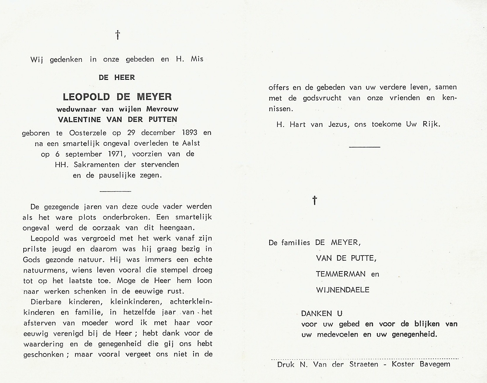 Geboren: 10 oktober 1895 33 28 — Bavegem Overleden: 4 januari 1971 — Bavegem |