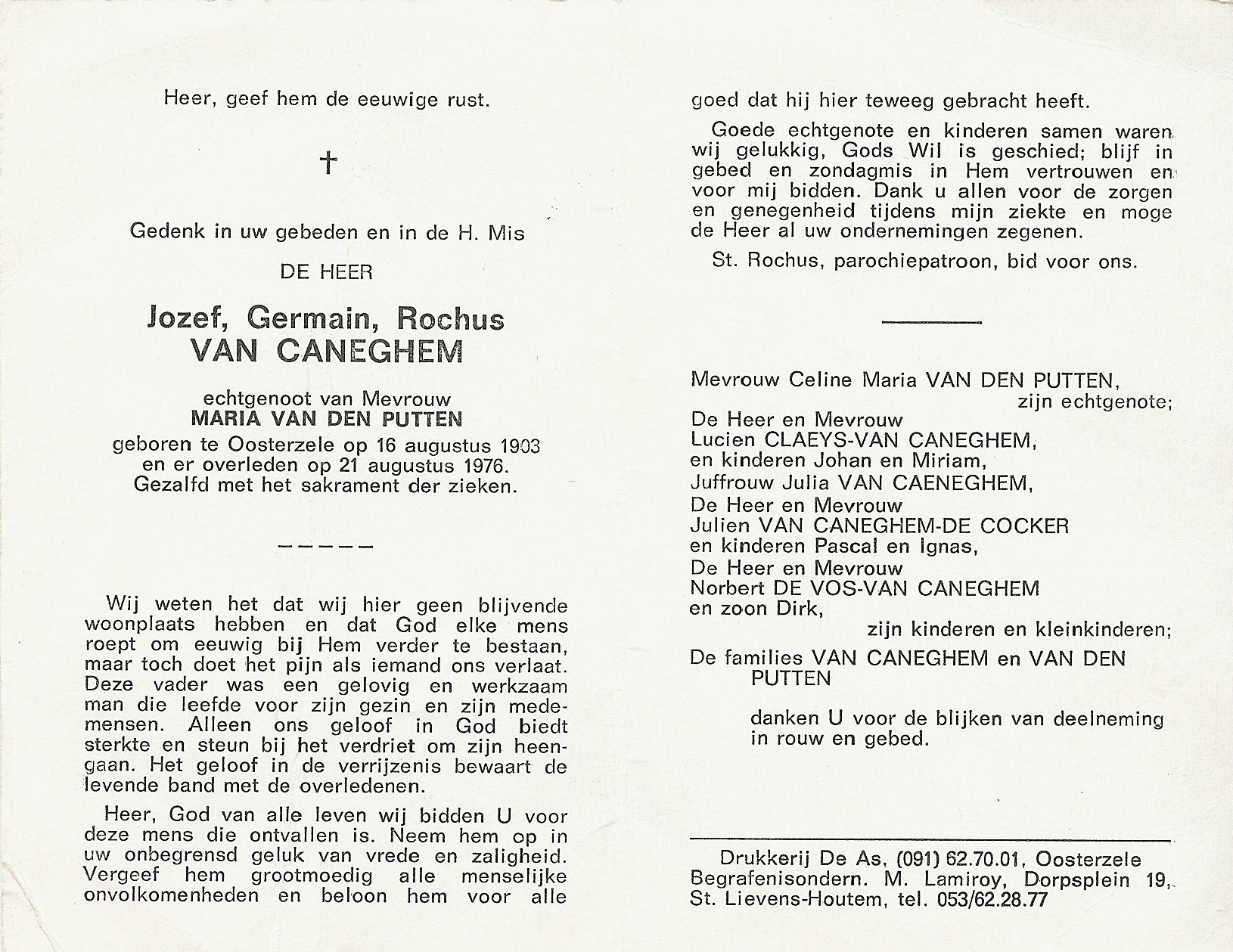 Overlijden van vader | Jozef Germain Rochus Van Caneghem 21 augustus 1976 (Leeftijd 38 jaar) |
