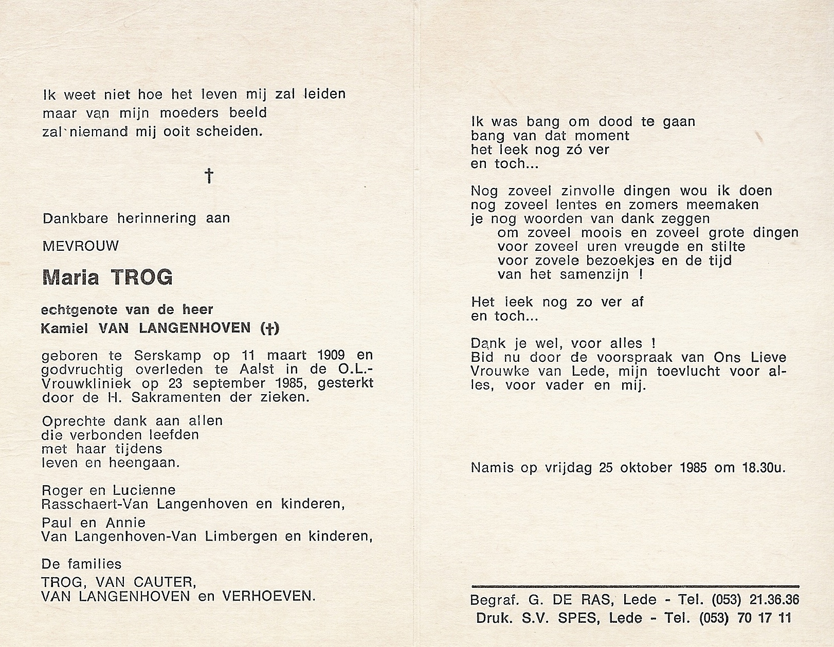 Overlijden van grootmoeder van moeders kant | Maria Trog 23 september 1985 (Leeftijd 23 jaar) |