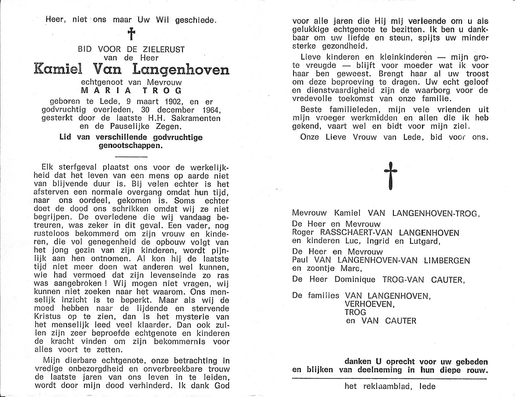 Overlijden van grootvader van moeders kant | Kamiel Van Langenhoven 30 december 1964 (Leeftijd 2 jaar) |