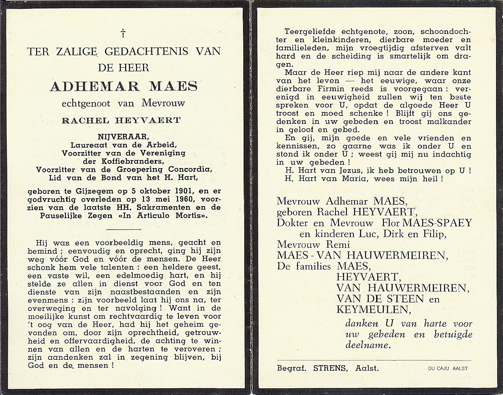 Philemon Adhemar Maes Geboren: 5 oktober 1901 30 27 — Gijzegem Overleden: 13 mei 1960 — Gijzegem |