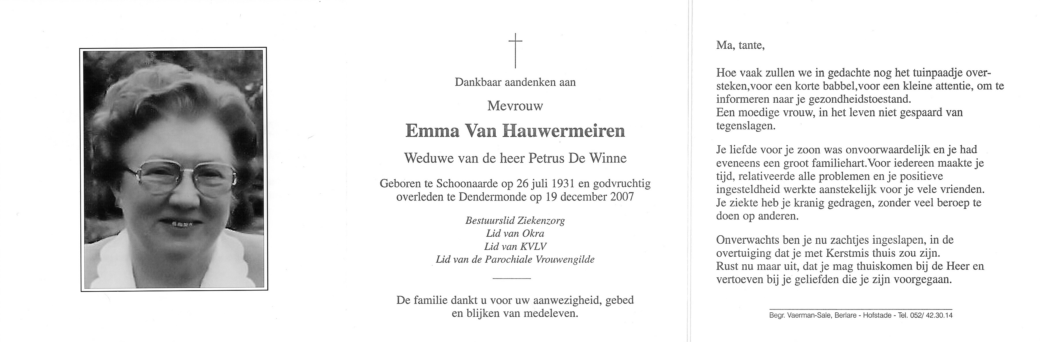 Emma Urbanie Van HauwermeirenLeeftijd: 76 jaar1931–2007