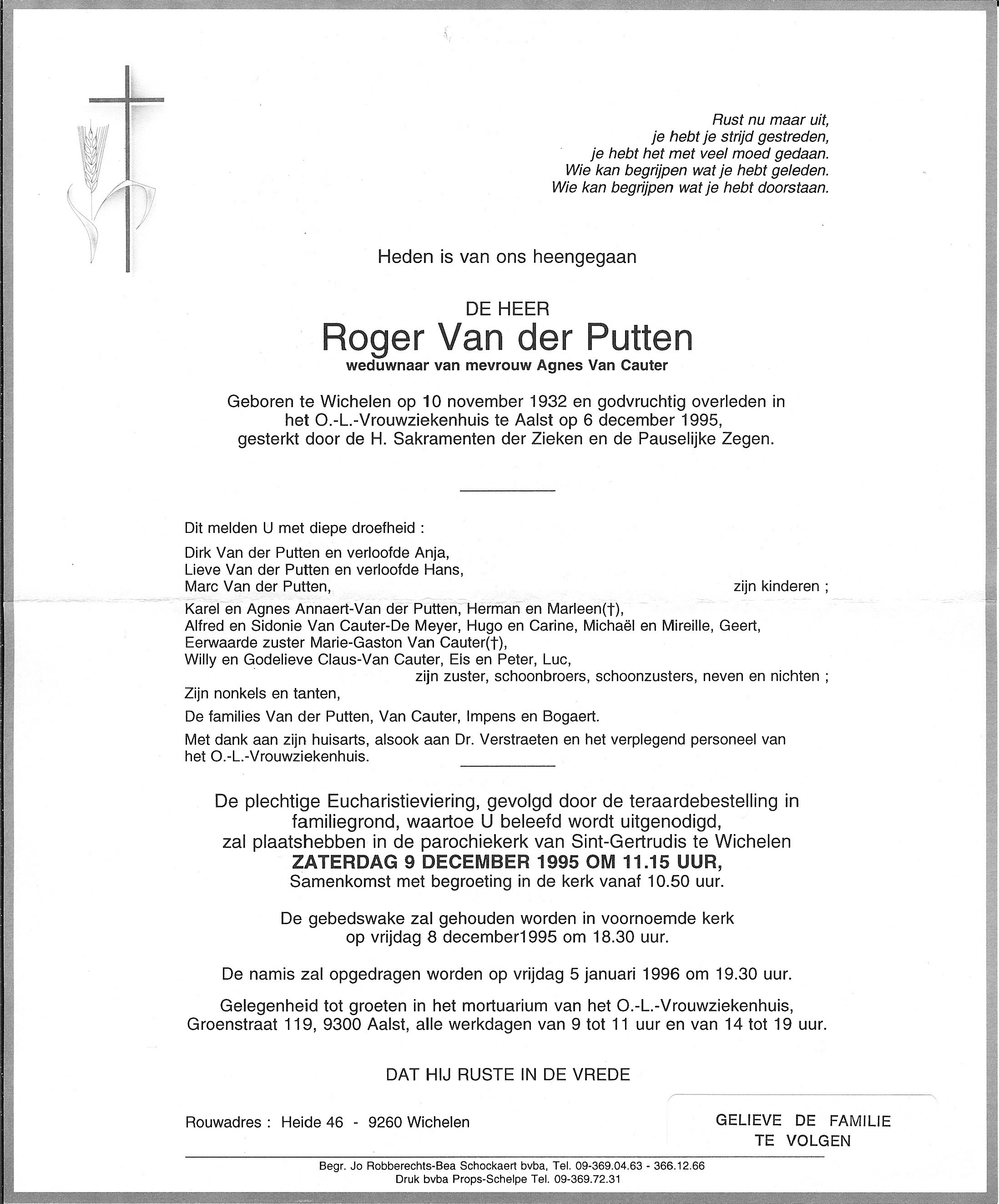 Roger Leopold Van der PuttenLeeftijd: 63 jaar1932–1995