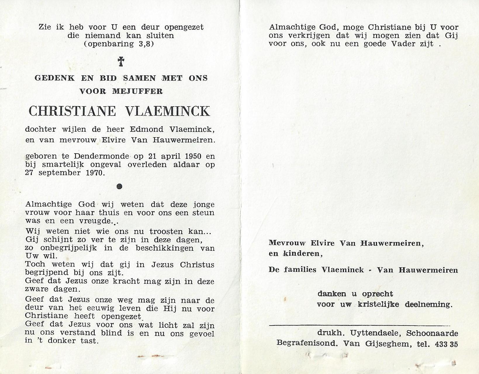 Overlijden van een zus | Christiane Vlaeminck 27 september 1970 |