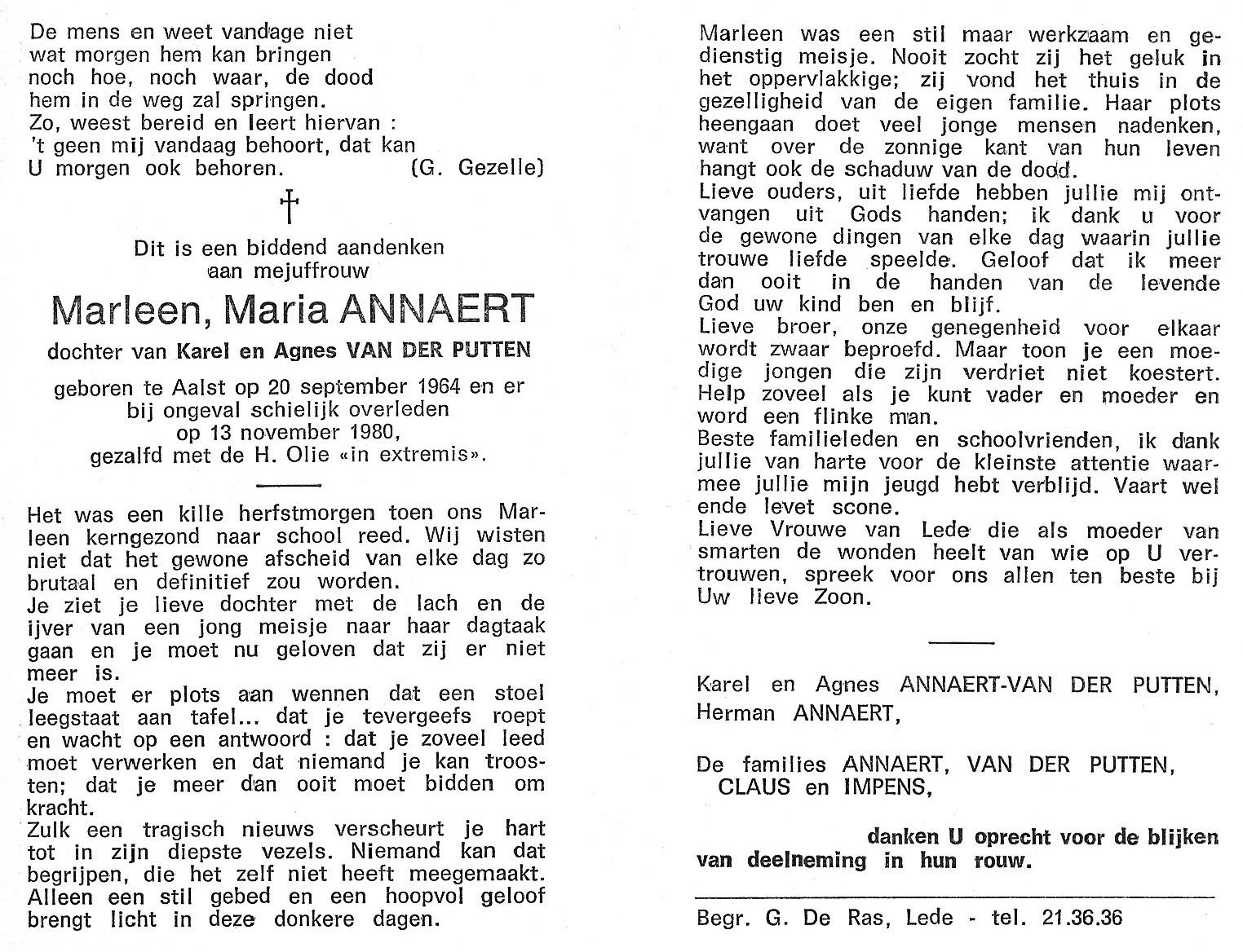 Marleen Maria AnnaertLeeftijd: 16 jaar1964–1980