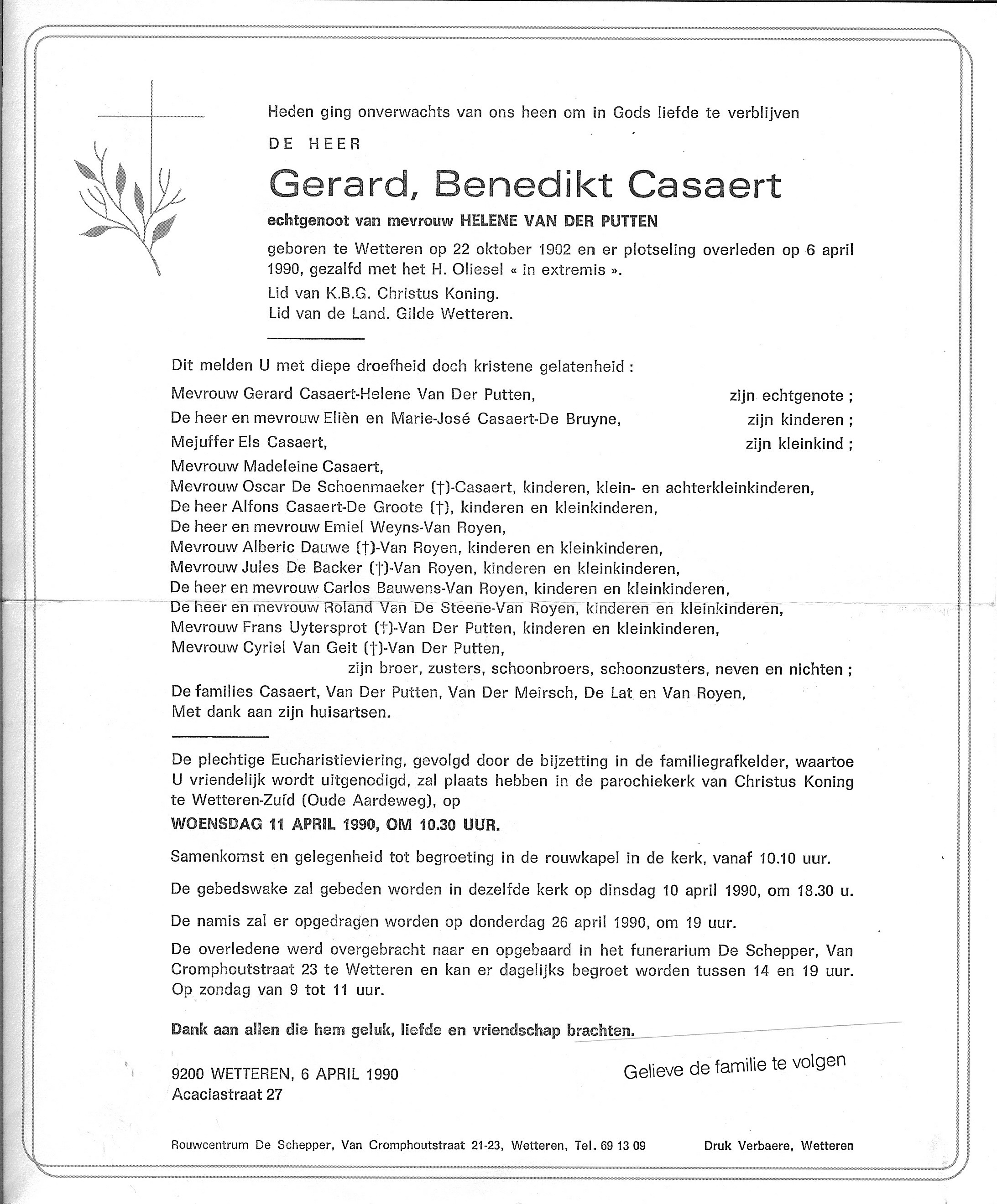 Gerard Benedikt Maria CasaertLeeftijd: 87 jaar1902–1990