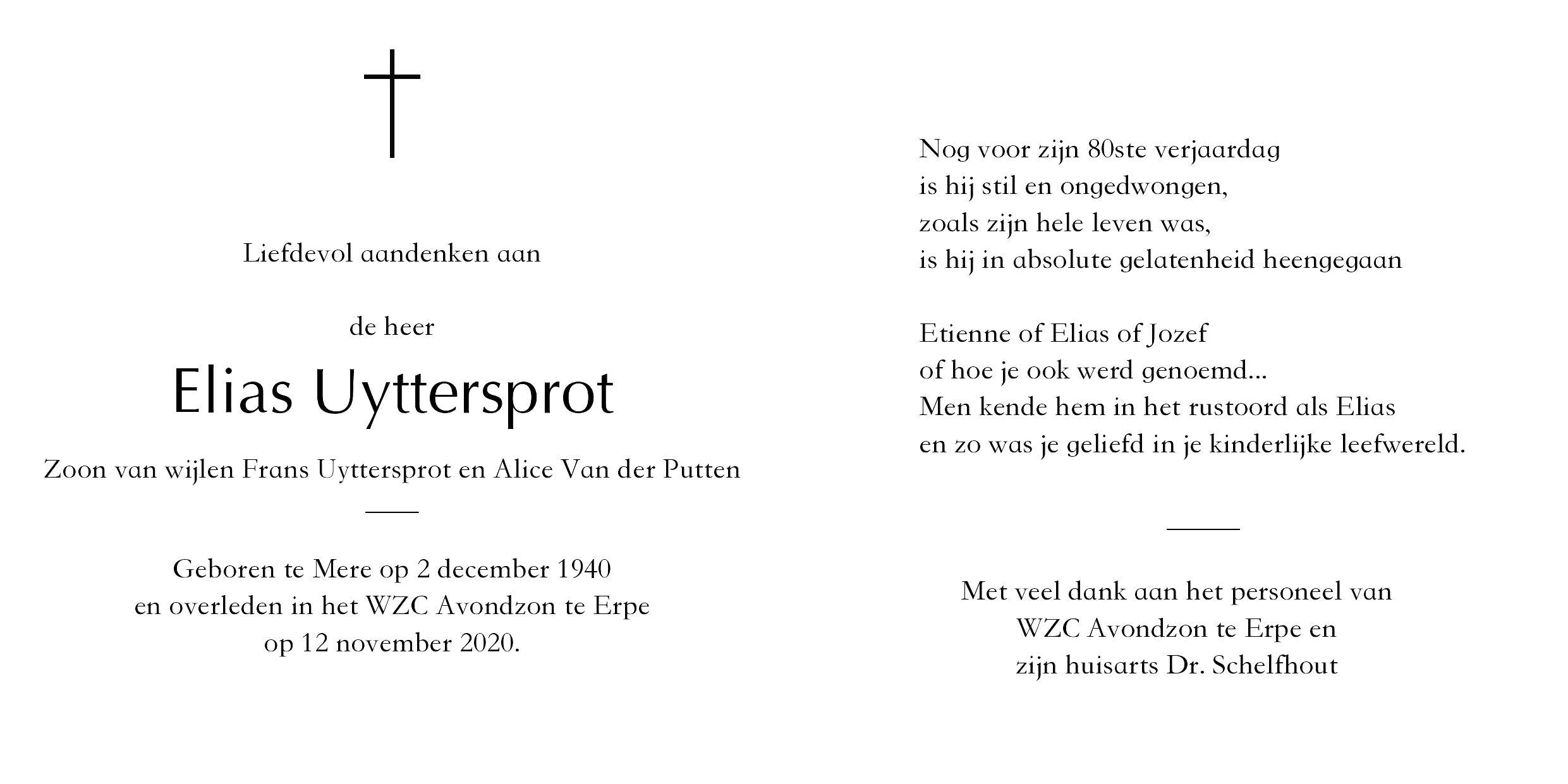 Elias Jozef UyttersprotLeeftijd: 79 jaar1940–2020