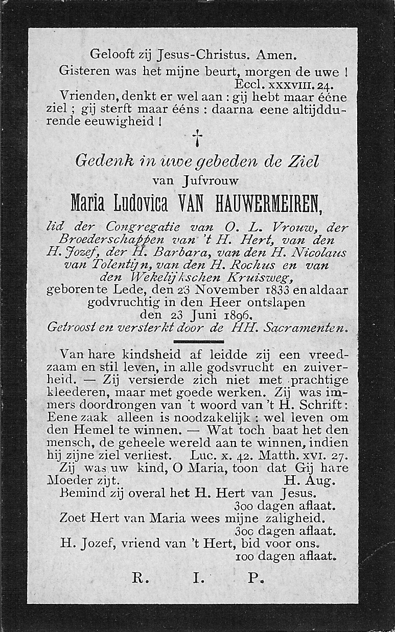Wilhelmina Van Hauwermeiren Geboren: 27 augustus 1828 31 30 — Lede Overleden: |
