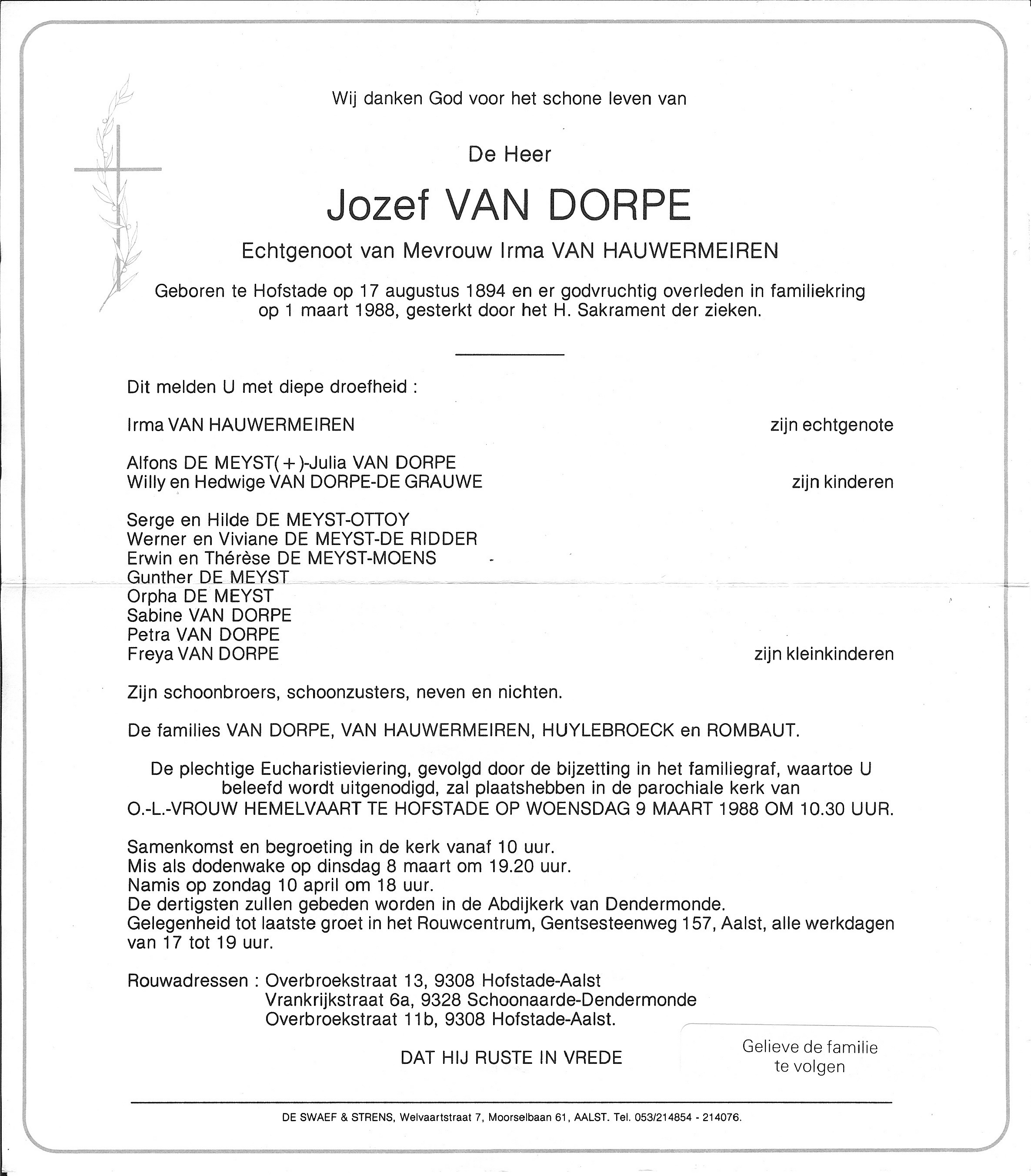 Jozef Van DorpeLeeftijd: 93 jaar1894–1988