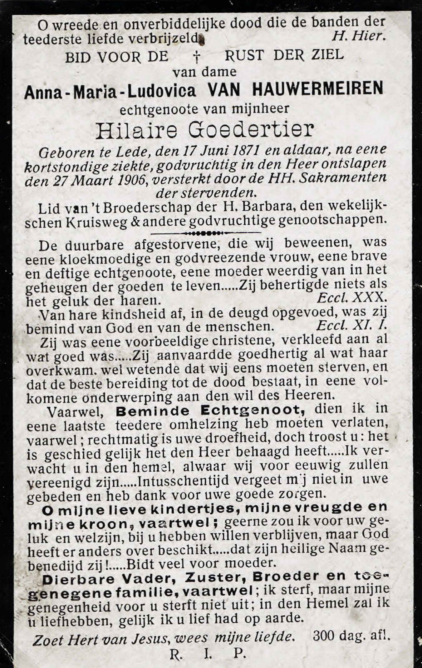 Begrafenis van moeder | Anna-Maria-Ludovica Van Hauwermeiren 30 maart 1906 (Leeftijd 4 jaar) |
