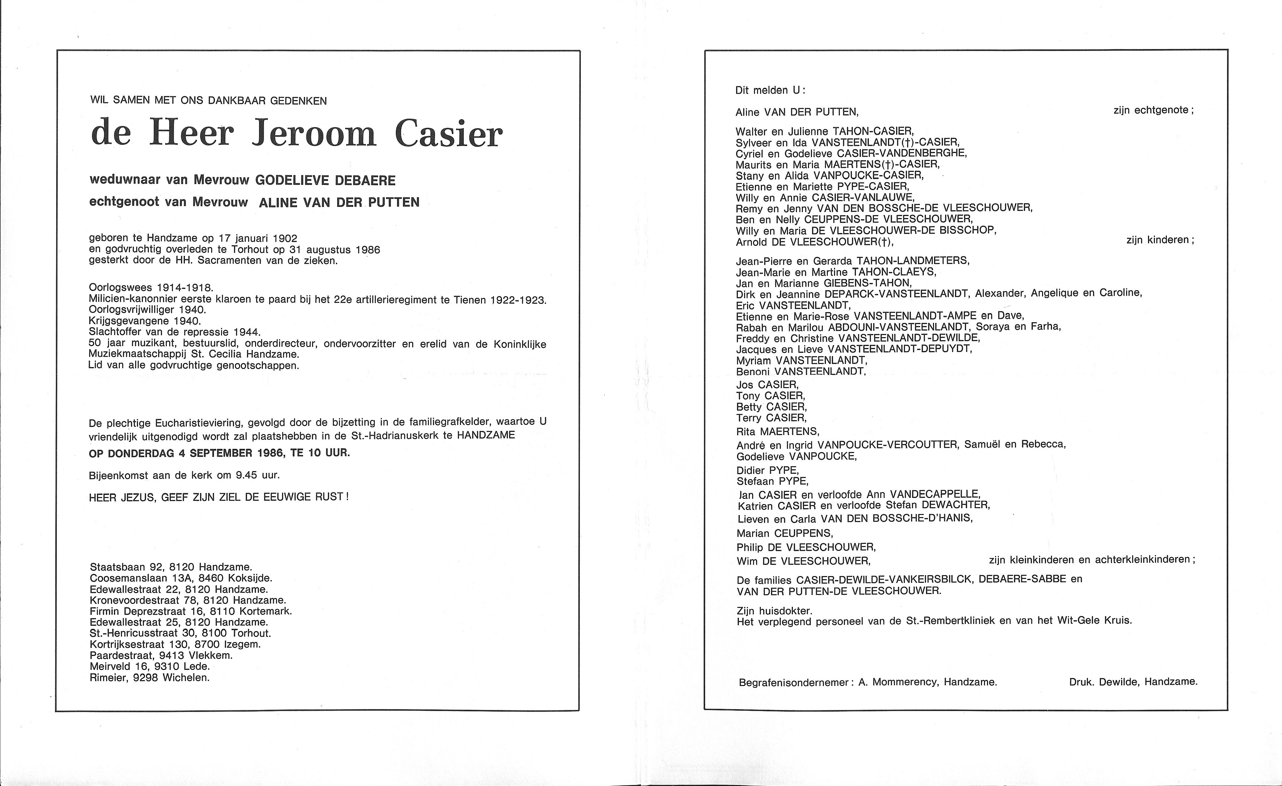 Jeroom CasierLeeftijd: 84 jaar1902–1986