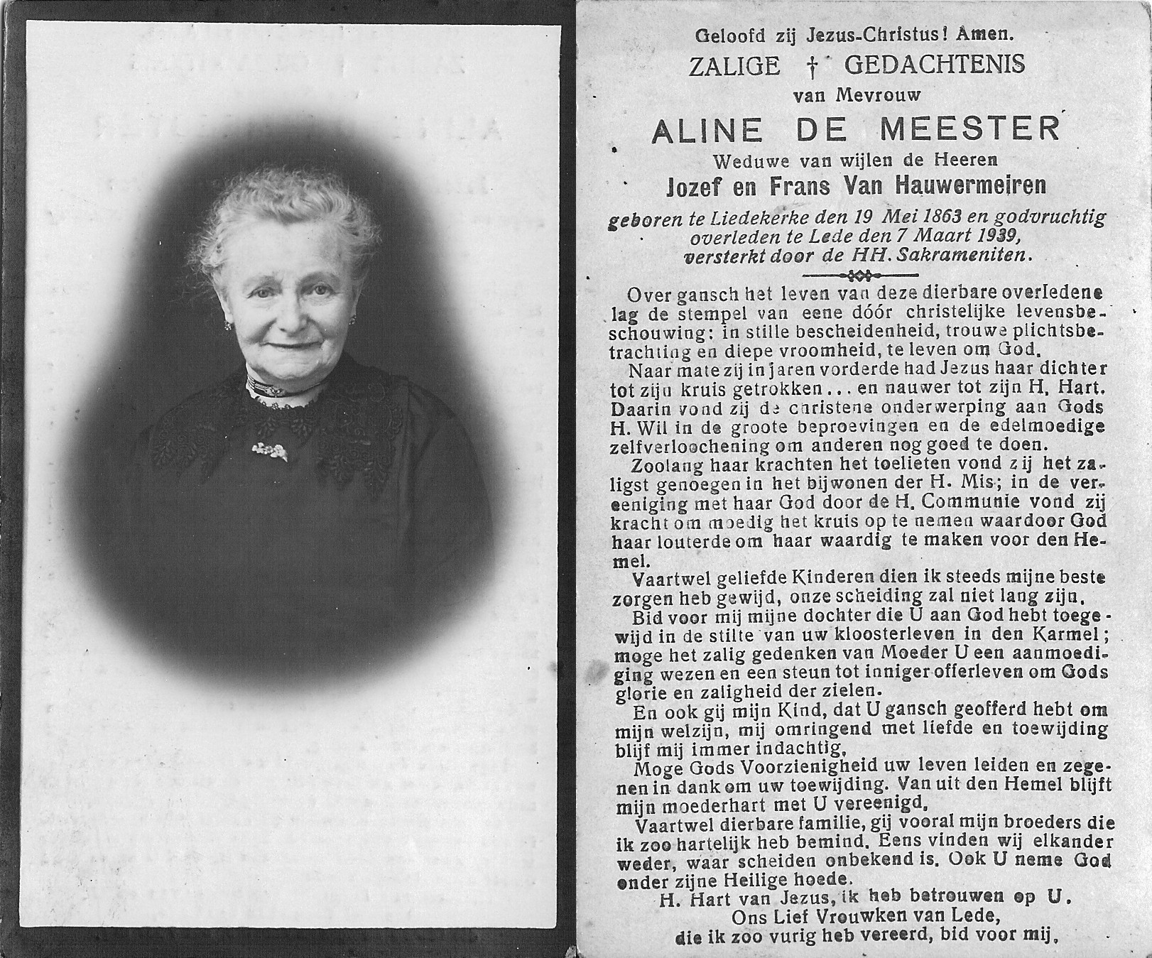 Maria Benedicta Irene Van Hauwermeiren Geboren: 11 mei 1896 29 32 — Lede Overleden: |