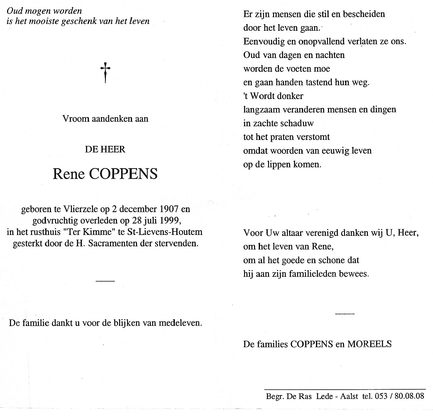 Overlijden van een broer | Angelus Maurits Coppens 12 november 1977 (Leeftijd 69 jaar) |