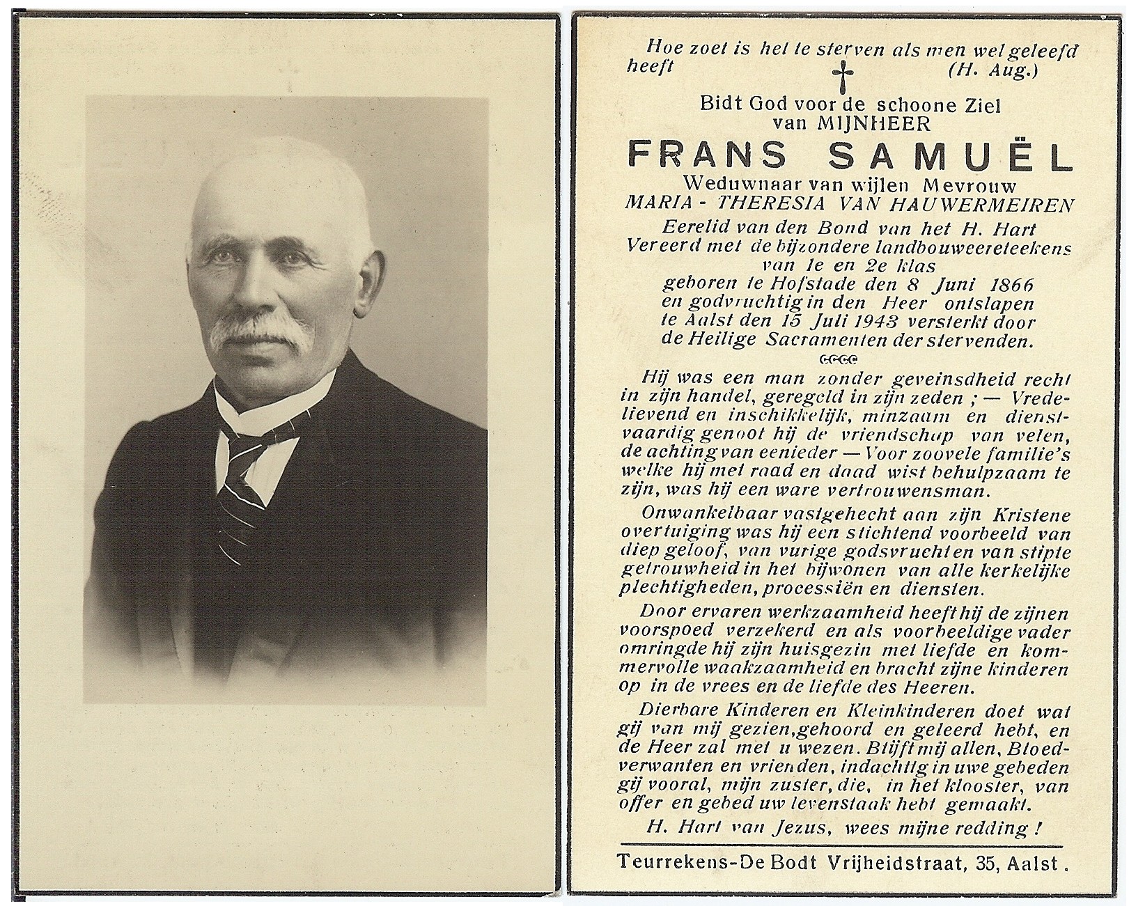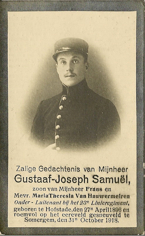Overlijden van een zoon | Gustaaf Jozef Samuël 31 oktober 1918 (Leeftijd 52 jaar) |