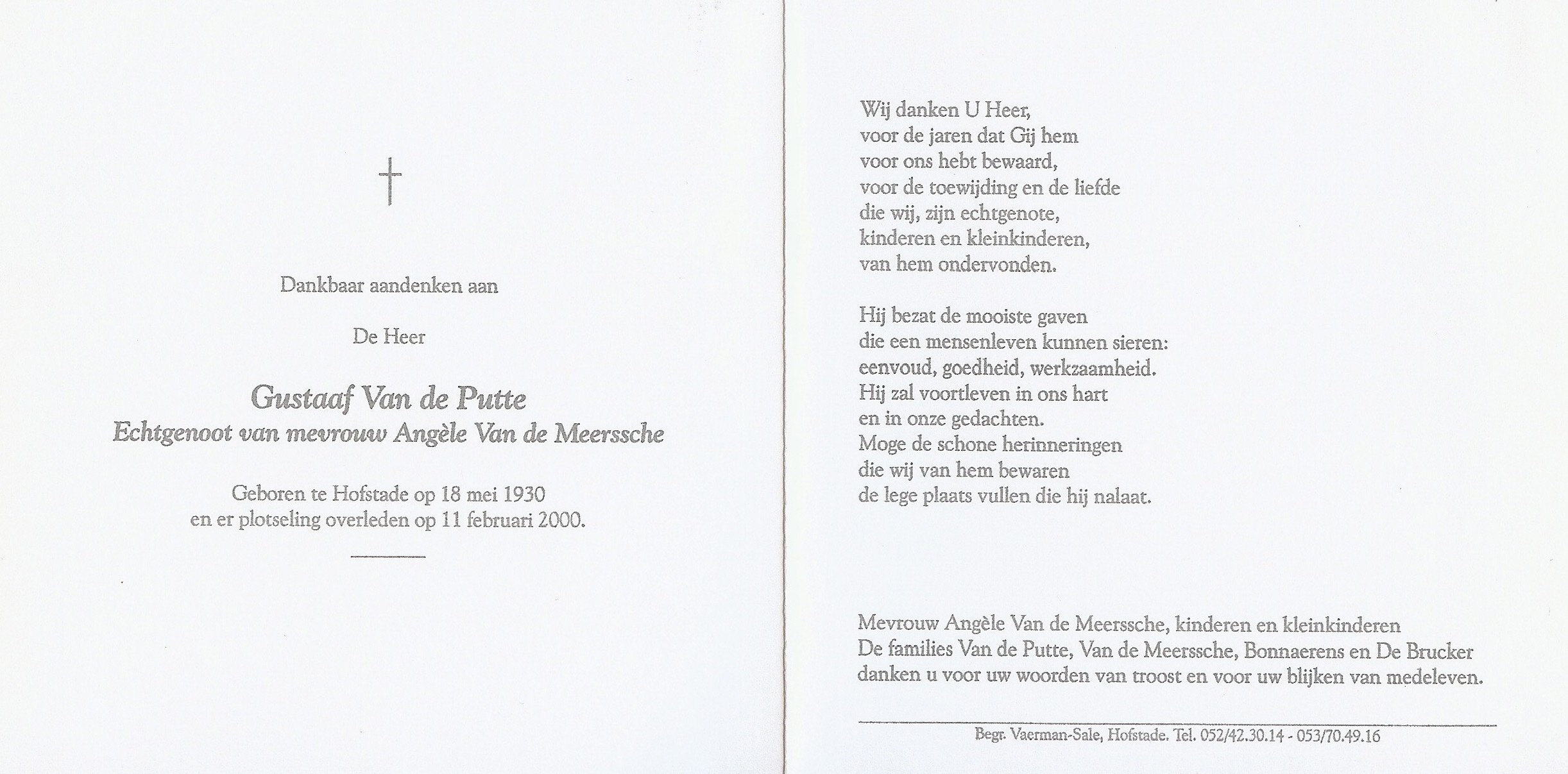 Overlijden van vader | Gustaaf Van de Putte 11 februari 2000 (Leeftijd 44 jaar) |