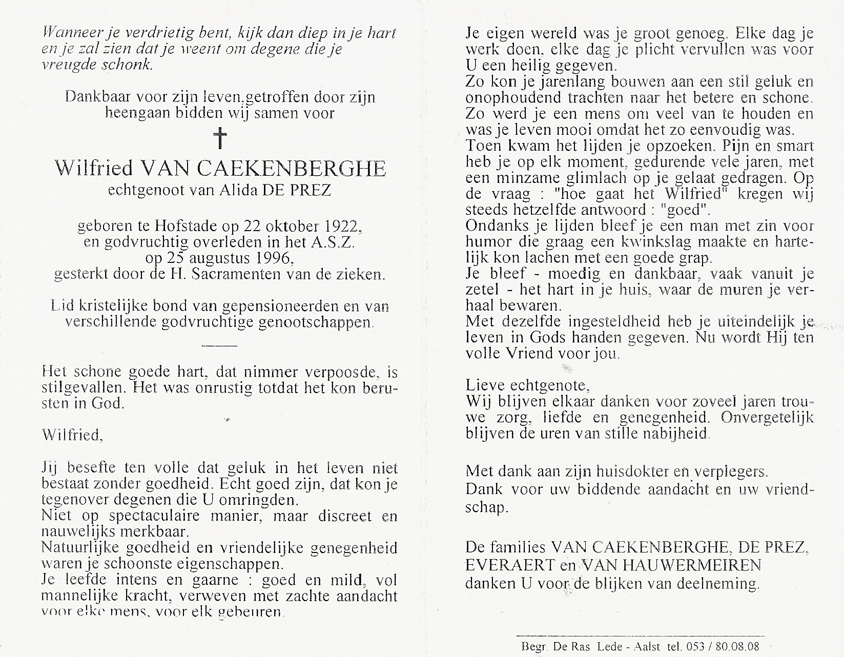 Wilfried Van Caekenberghe Geboren: 22 oktober 1922 — Hofstade Overleden: 25 augustus 1996 — Aalst |
