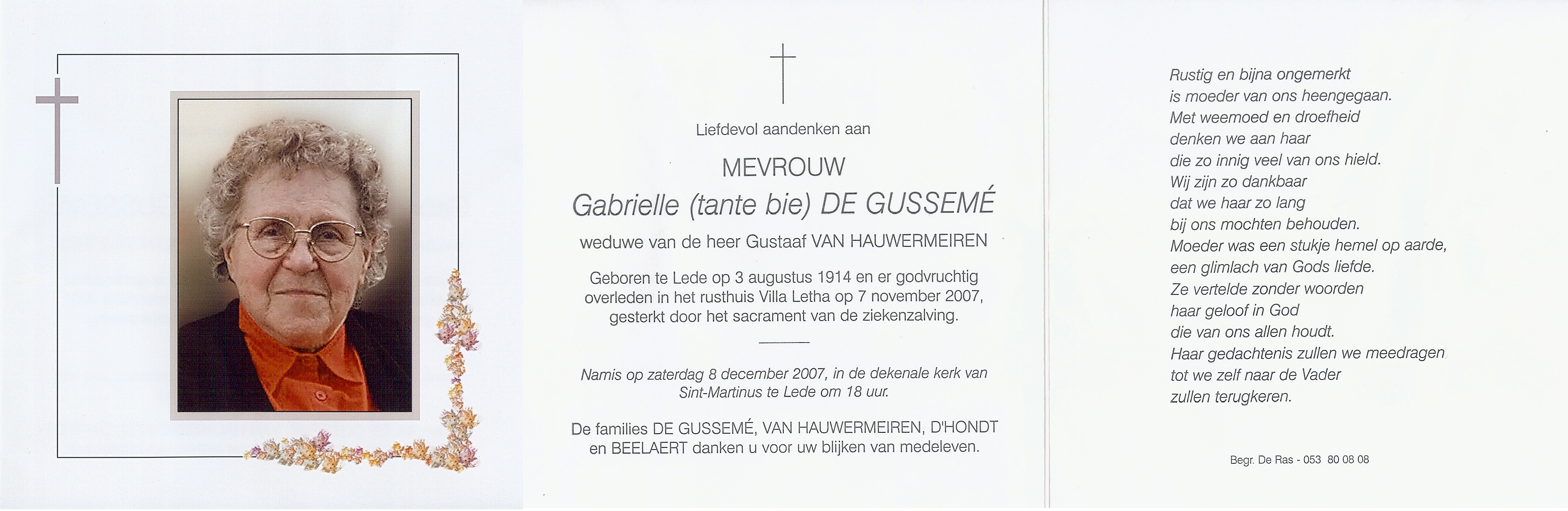 Gustavus Ludovicus Leo Van Hauwermeiren Geboren: 21 december 1905 32 27 — Lede Overleden: 13 december 1984 — Aalst |