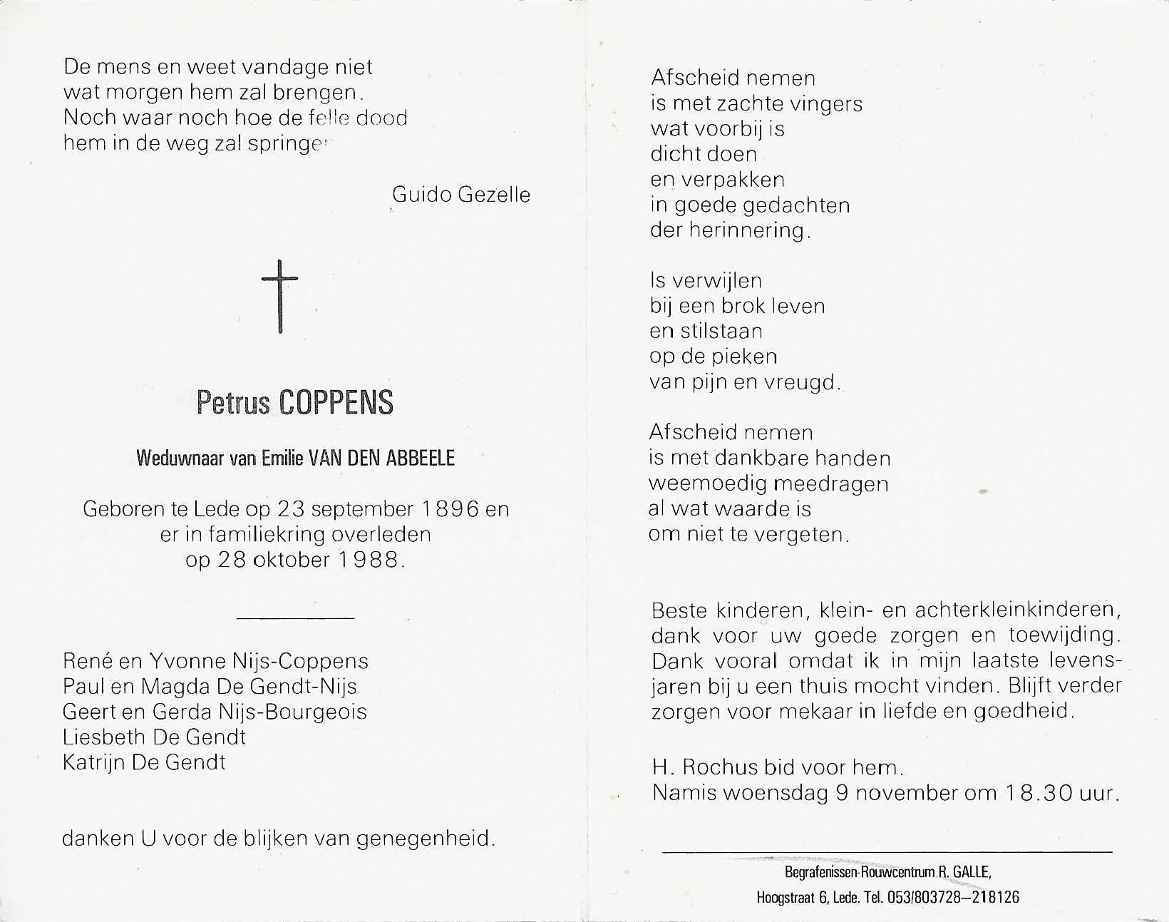 Petrus Ludovicus Coppens Geboren: 23 september 1896 30 22 — Lede Overleden: 28 oktober 1988 — Lede |