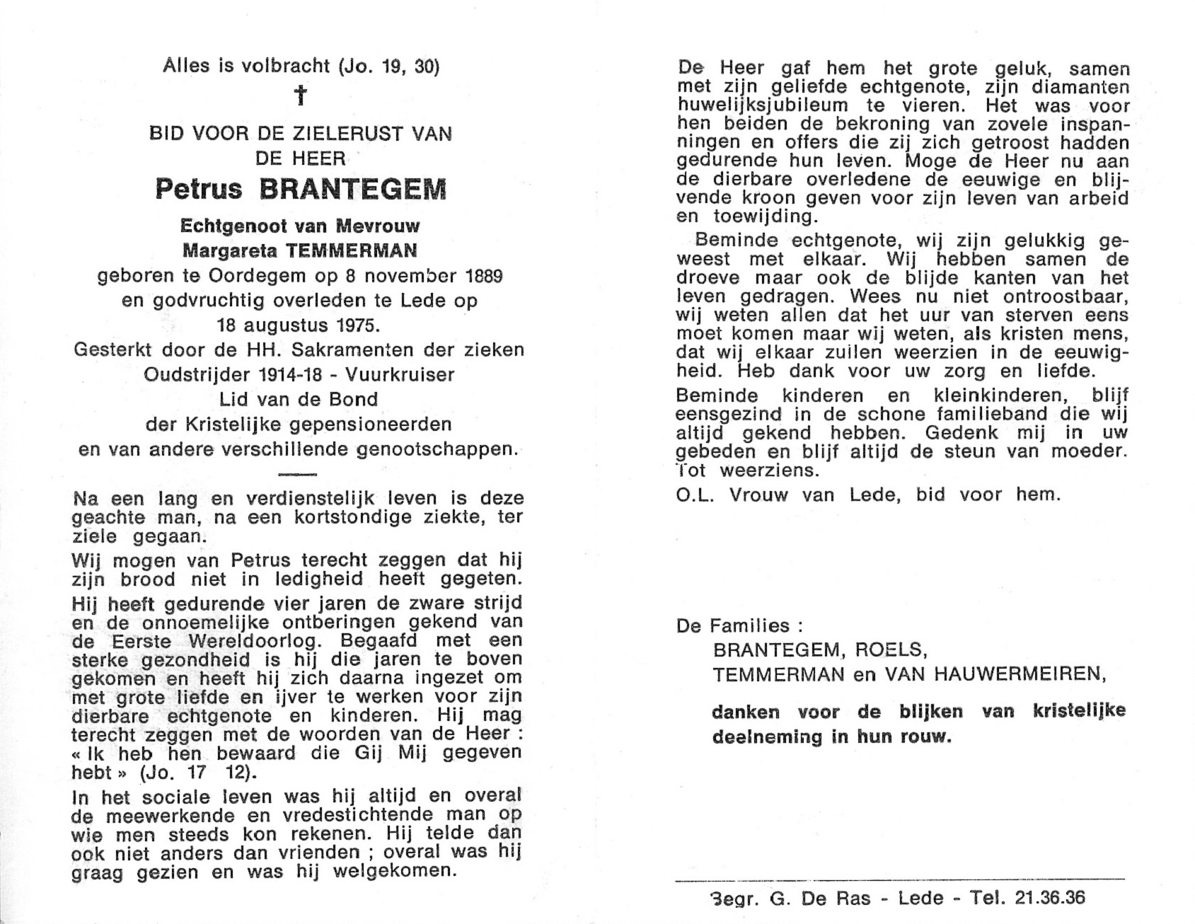 Overlijden van een echtgenoot | Petrus Brantegem 18 augustus 1975 (Leeftijd 82 jaar) |