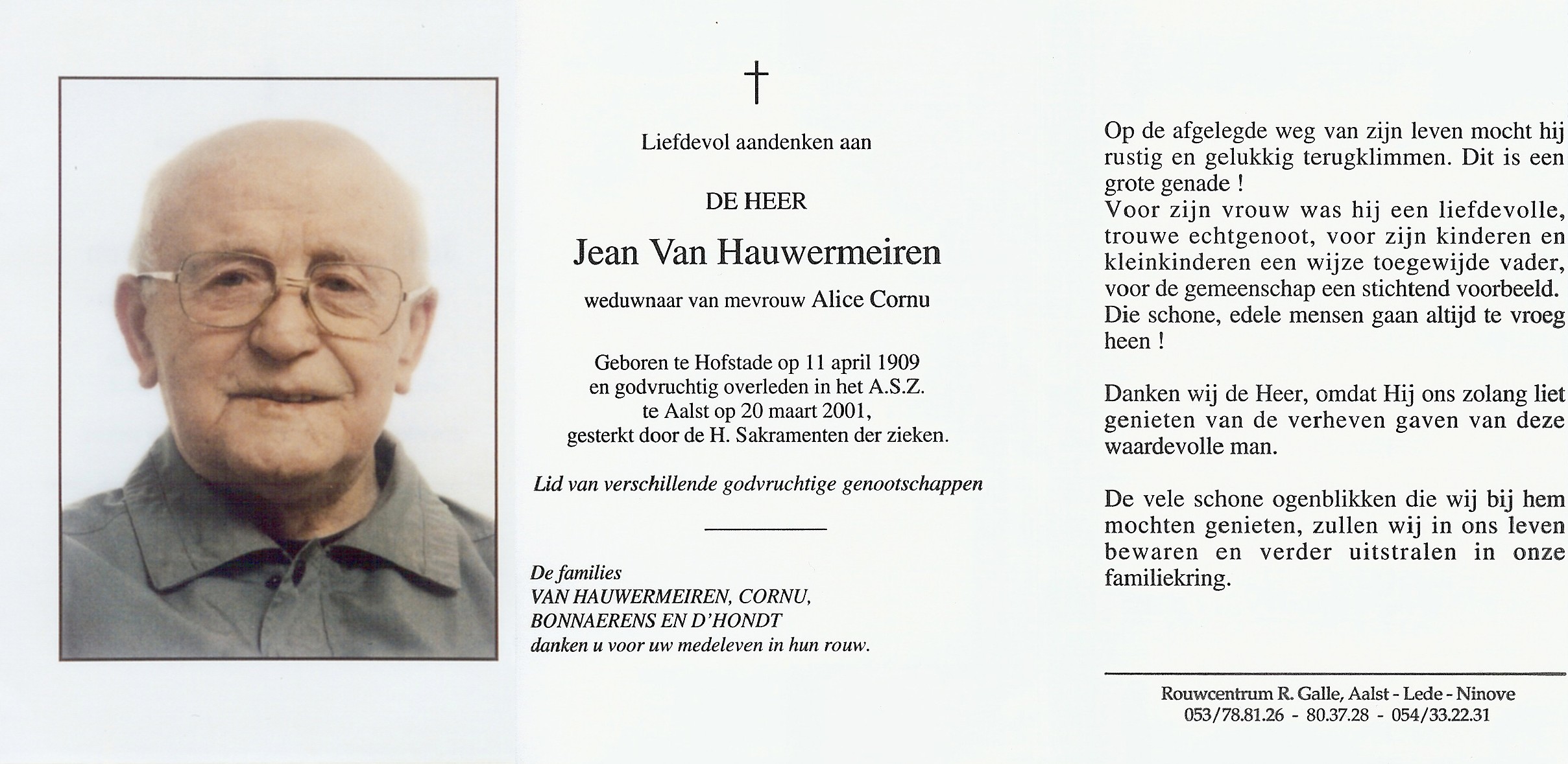 Geboren: 11 april 1909 25 25 — Hofstade Overleden: 20 maart 2001 — Aalst |